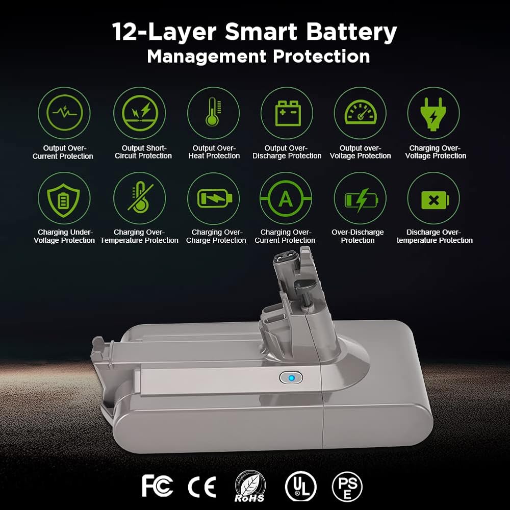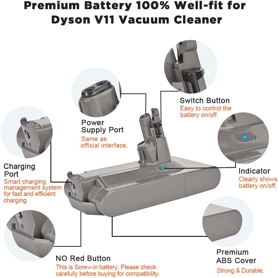 Grade AAA Battery Replacement Fit for Screw-in Battery for V11 Complete, Dyson Absolute, Dyson Fluffy, Dyson V11 Animal, Dyson V11 Animal (Red), Dyson V11 Torque Drive, SV14 V11 and original charger.