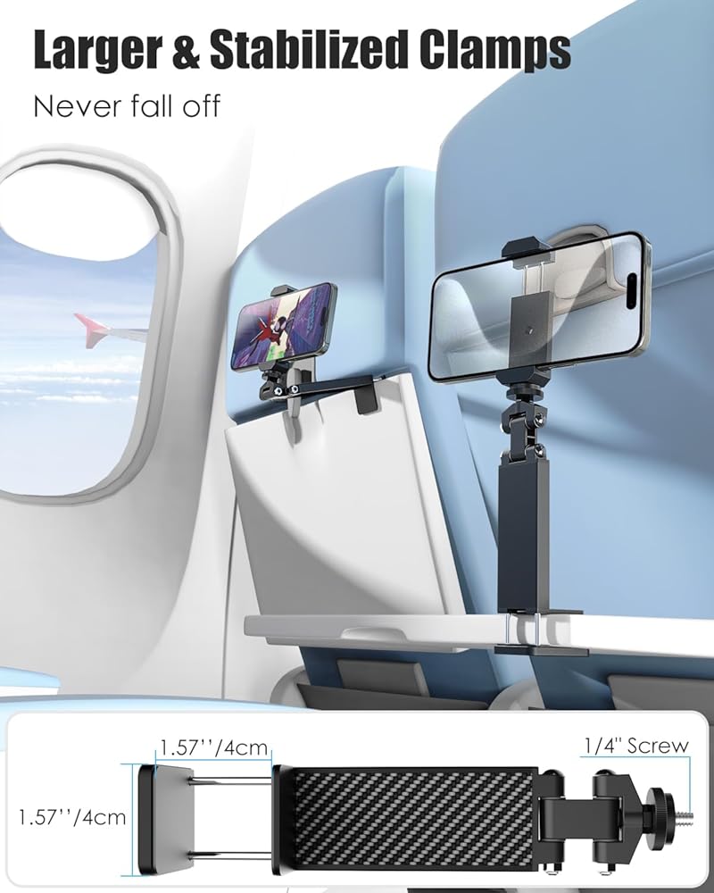 【تثبيت أينما تريد-سهل التركيب】أقصى مدى للمشبك القوي للحامل: 1.57 بوصة/4 سم. يسمح تعدد استخداماته بالتركيب على أسطح مختلفة بما في ذلك صواني طاولات الطائرات، وصواني طاولة القطارات، ومقابض الأمتعة، والمكاتب، والأسرة، وخزائن المطبخ، حتى كعصا سيلفي قصيرة متاحة أيضًا للاستخدام كحامل هاتف مكتبي، وهي مثالية للاستخدام في المنزل أو المكتب.