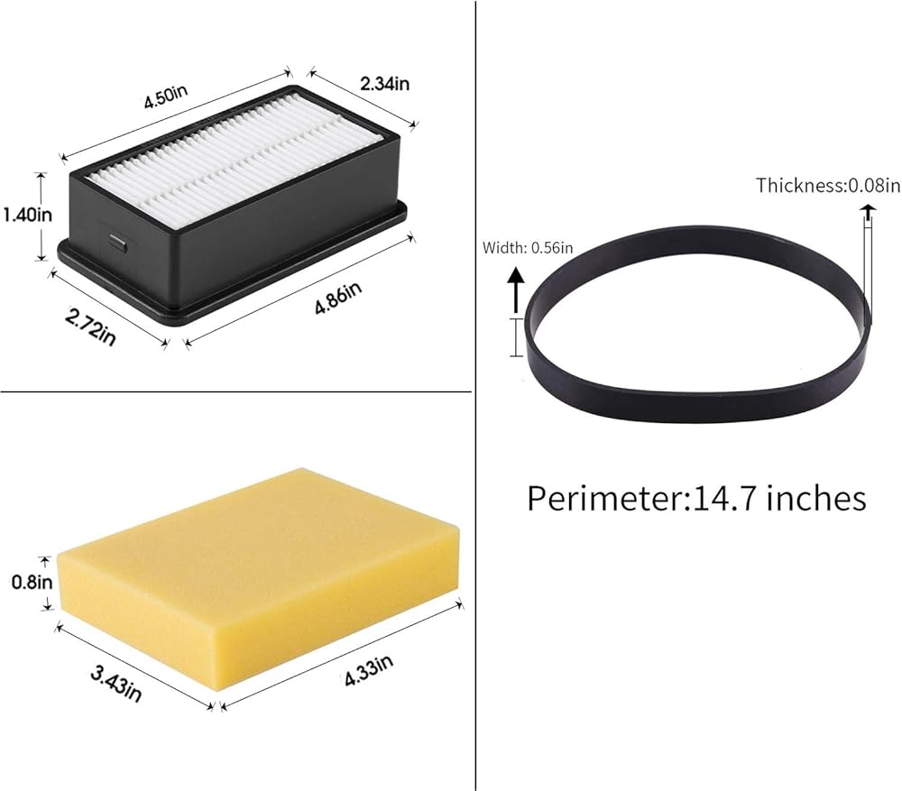 Packaging includes:2 × Motor Foam Filters , 2×Motor Pleated Filters ,2 × belts
