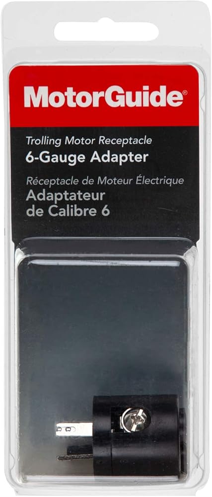 This MotorGuide Trolling Motor Receptacle 6-Gauge Adapter is designed for use with a MotorGuide Trolling Motor Receptacle (8M0092066; sold separately) for a sure and safe power connection. This adapter accepts 6-gauge wire and features a durable black plastic housing. MotorGuide has been dedicated to engineering and manufacturing innovative trolling motors and accessories for over 50 years. Proudly setting the standard for the most accurate PinPoint® GPS system and quietest motors, MotorGuide provides anglers with precise propulsion for superior boat control.