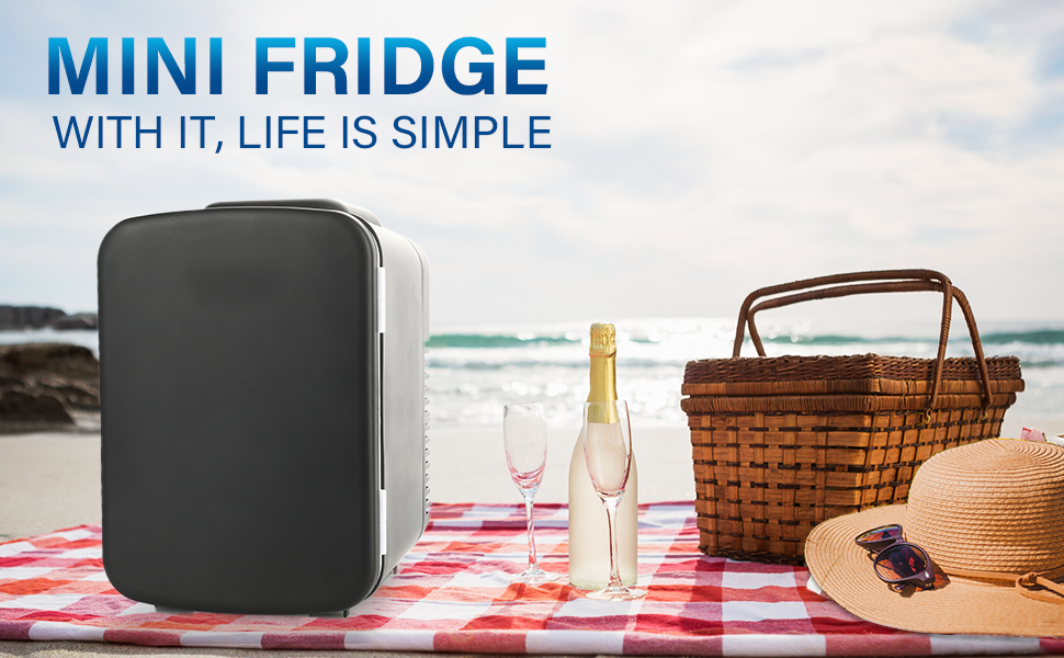 Portable: The external size is 9.45*7.09*10.43 inches, so it is very easy to carry and doesn't take up much space. This allows the small refrigerator to be used in a variety of occasions, such as camping, parties, offices, dormitories and so on!