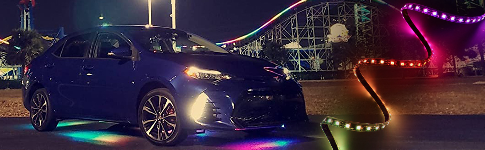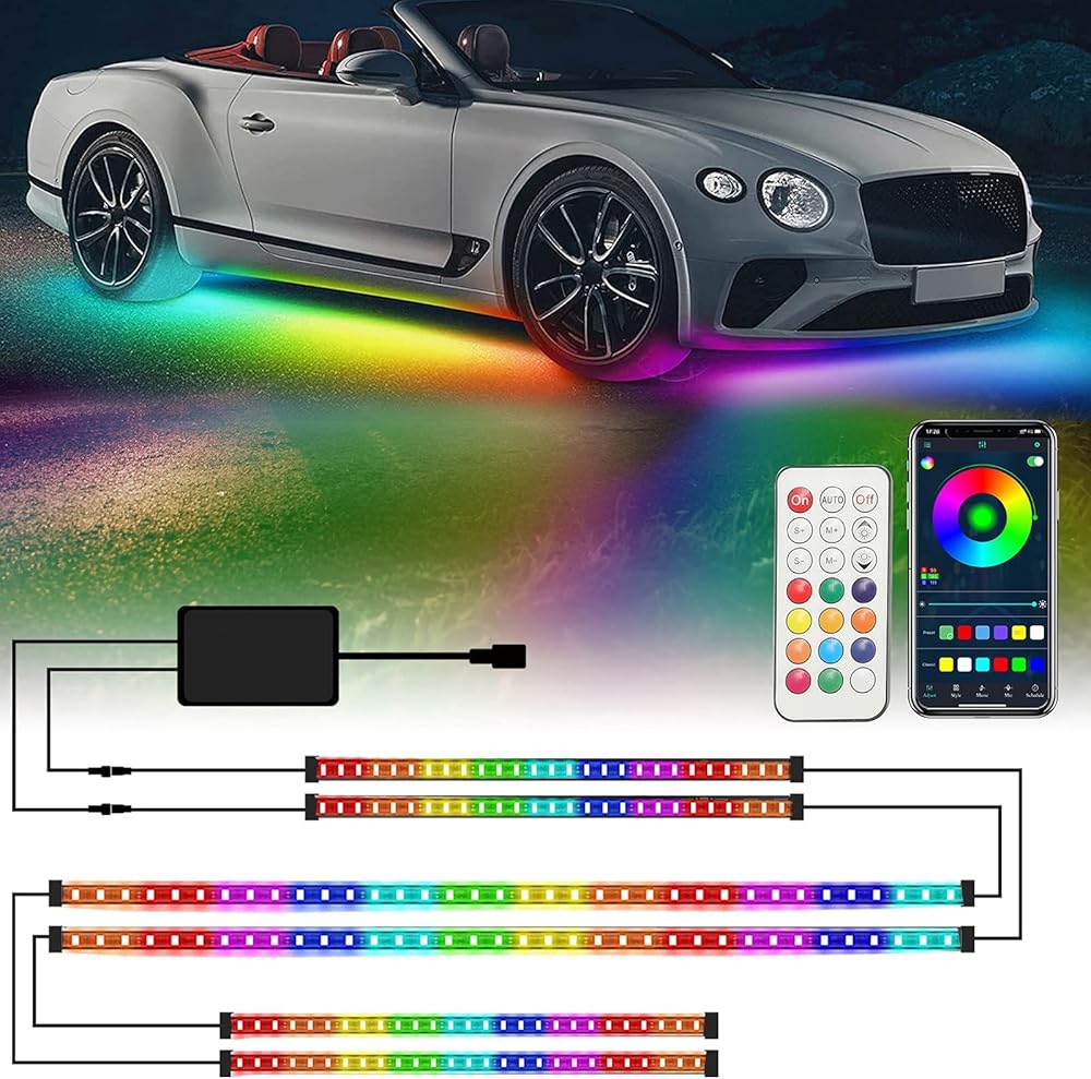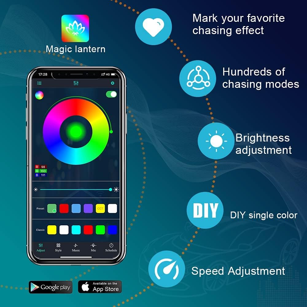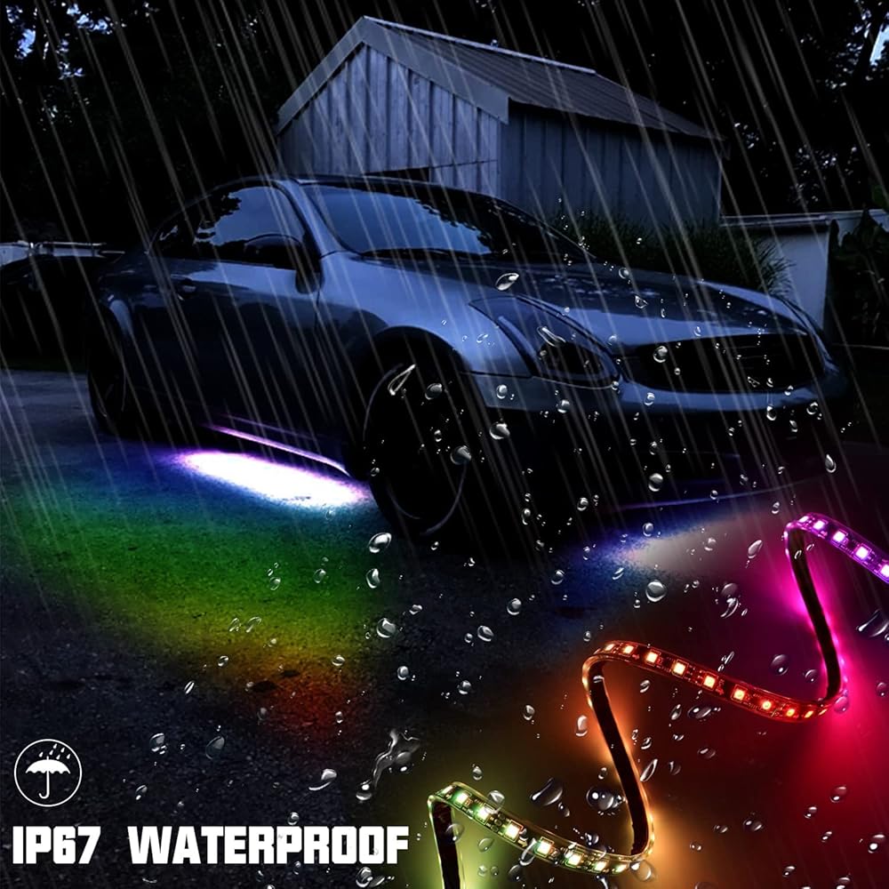Winunite مركبة Underglow LED أضواء الشريط مع حلم اللون مطاردة بلوتوث APP التحكم 12V مجموعة ضوء Underbody لسيارات الدفع الرباعي والشاحنات والقوارب مع تصميم مقاوم للماء بخطين