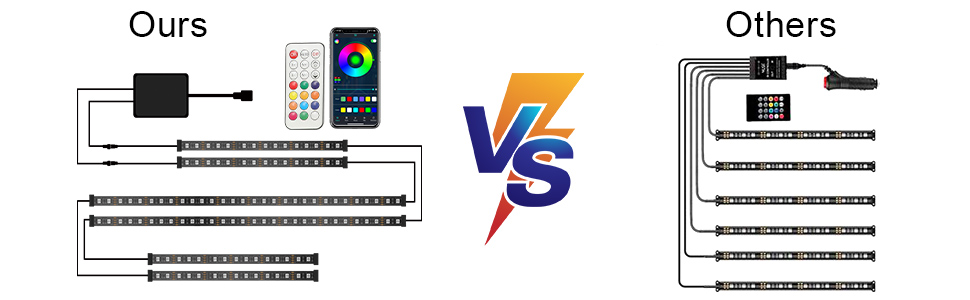 سهلة التركيب - يمكنك تشغيل أضواء الشريط ببساطة عن طريق الأسلاك الإيجابية والسلبية. ميزات الشريط المرن والقوي ذاتي اللصق تجعل من السهل وضعه تحت السيارة، والأكثر من ذلك، فإن مشابك التثبيت الاحتياطية وربطة الكابل ستجعله يبقى تحت السيارة بشكل أكثر ثباتًا.