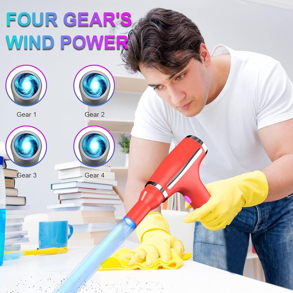💘【رياح قوية مع 4 أوضاع للسرعة】يحتوي منفضة الهواء على 4 سرعات رياح --- مفتاح ضغط طويل لمدة 3 ثوانٍ يمكن تشغيل الجهاز وإيقاف تشغيله. يمكن لمفتاح الضغط القصير التبديل إلى أربع سرعات رياح لتنظيف المعدات المختلفة، بحيث لا يكون للغبار مكان للبقاء فيه. سيصبح التنظيف ممتعًا.