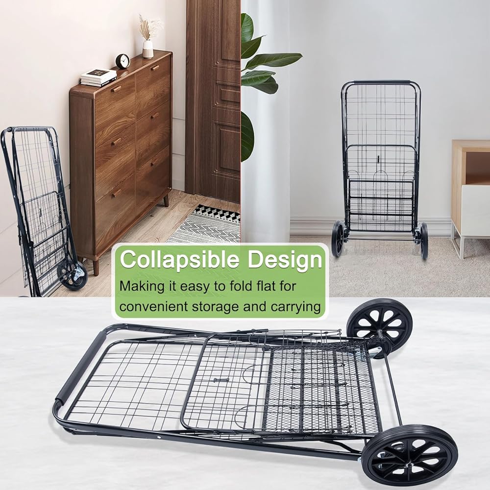 عربة تسوق قابلة للطي، عربة بقالة على عجلات قابلة للطي، عربات تسوق للبقالة، عربة تسوق قابلة للطي تحمل ما يصل إلى 70 لتر/كحد أقصى 110 رطل لعربات تخزين المطبخ وعربات المرافق