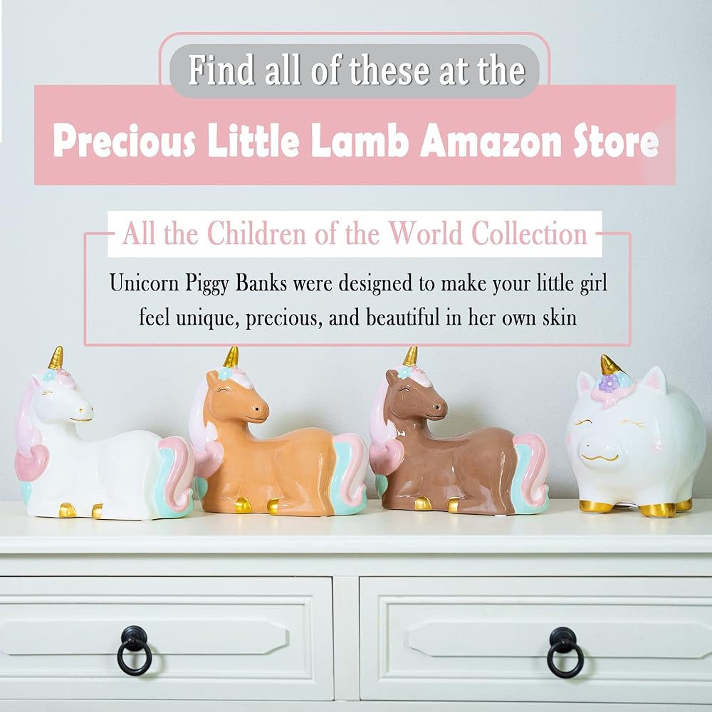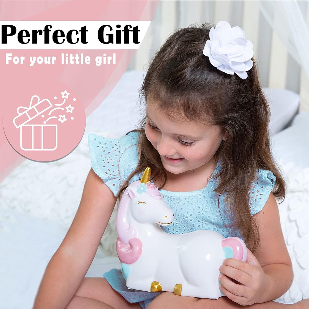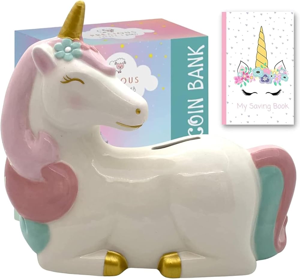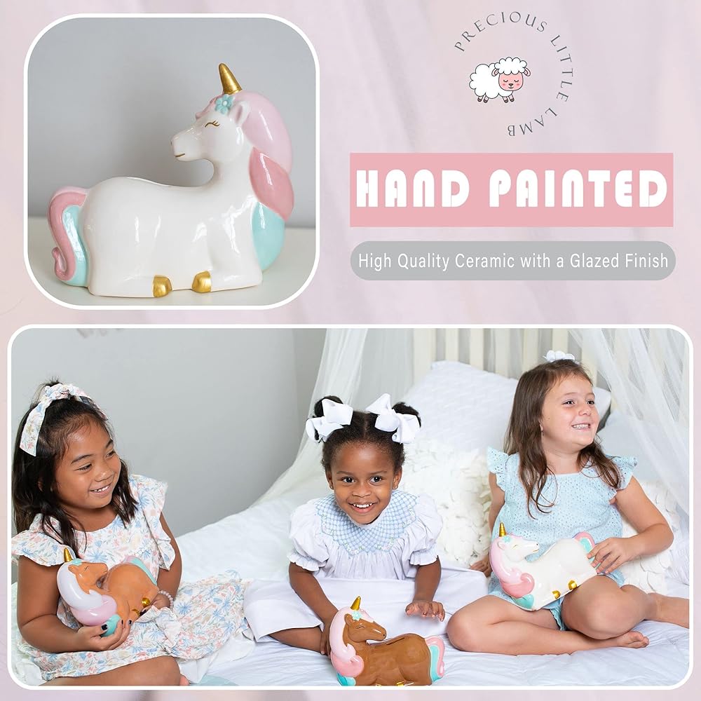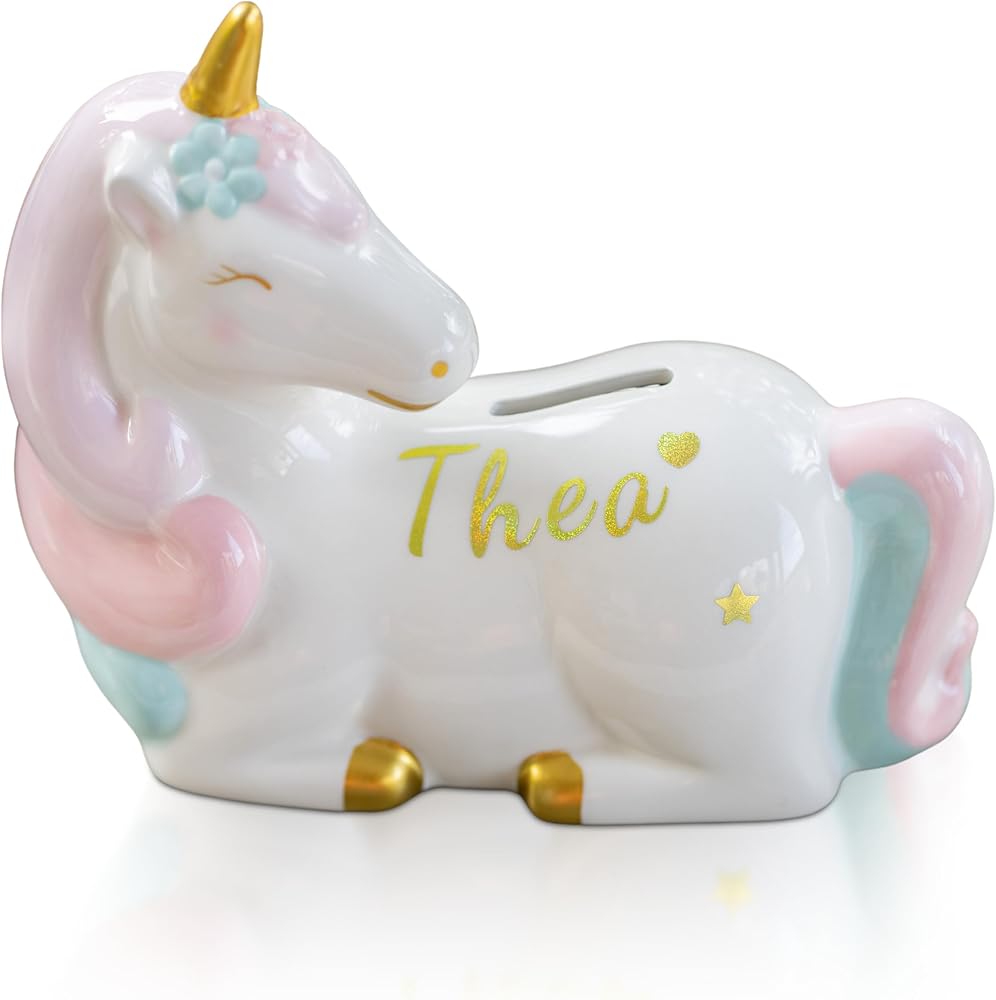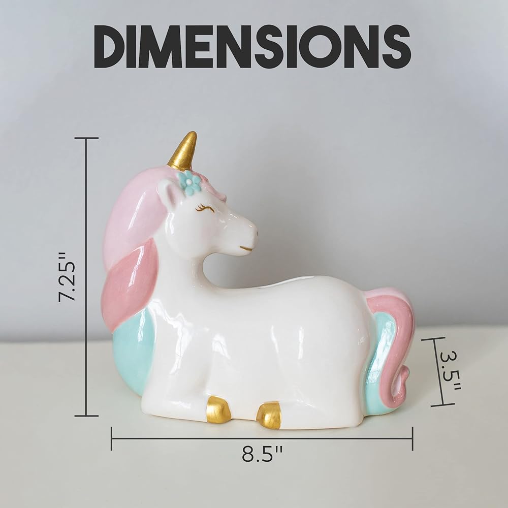 تذكار العزيزة. تُعد حصالات الأطفال الخاصة بنا هدية رائعة لأميرتك الثمينة. هدية للفتيات الصغيرات من أجل: حفل استقبال المولود الجديد، هدية عيد ميلاد الفتاة، الكريسماس، التعميد، المعمودية وأي سبب من الأسباب للحصول على هدايا وحيد القرن للفتيات!