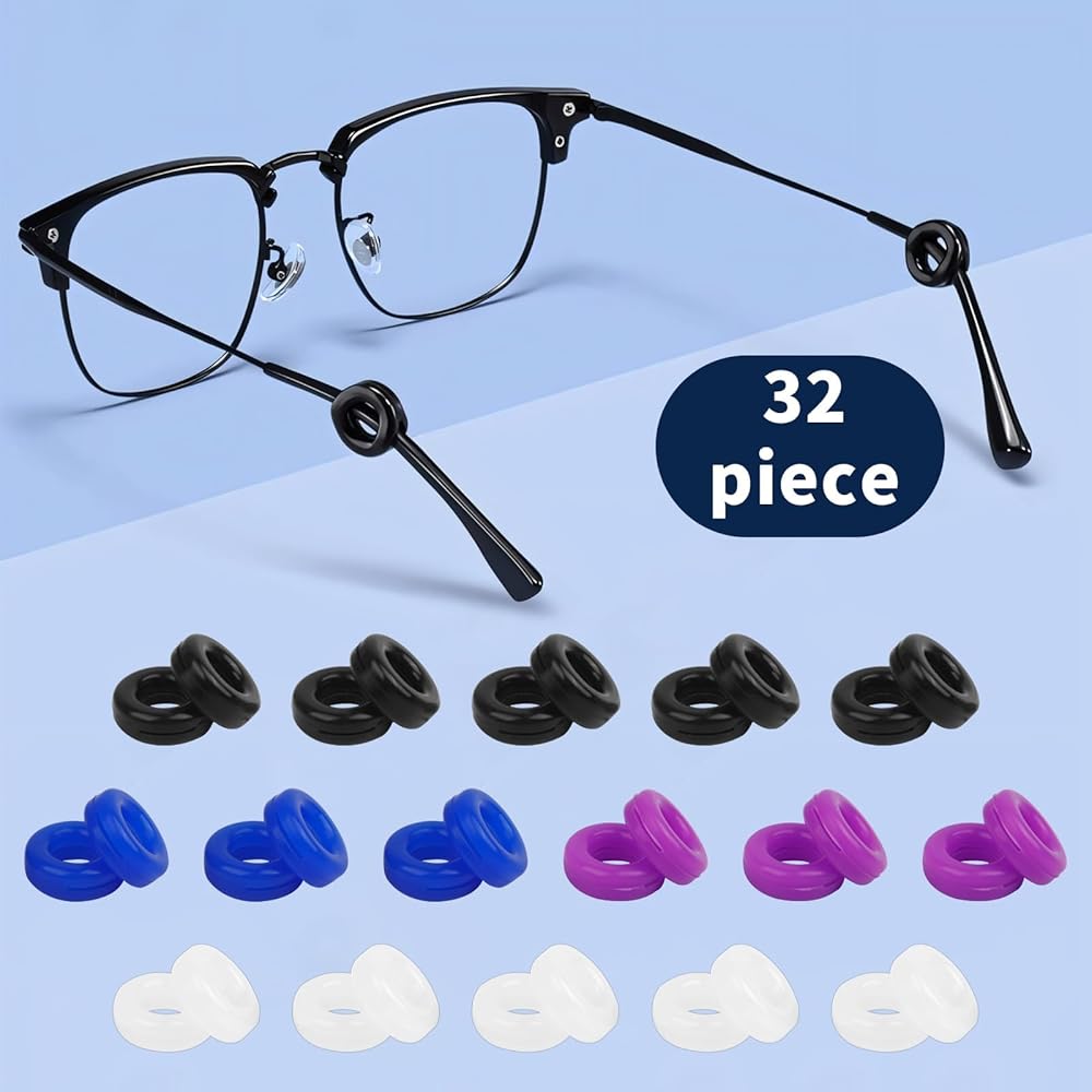 【Color Variety】Our 32 PCS glasses ear grips come in a variety of 10 black, 10 white, 6 purple and 6 blue pieces to match any frames. The silicone material molds comfortably to ears to prevent glasses from slipping. Great for kids and adults!