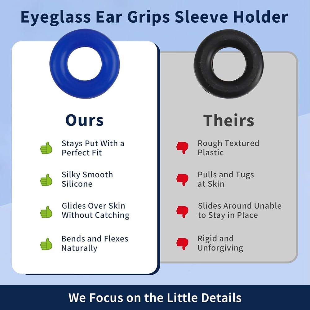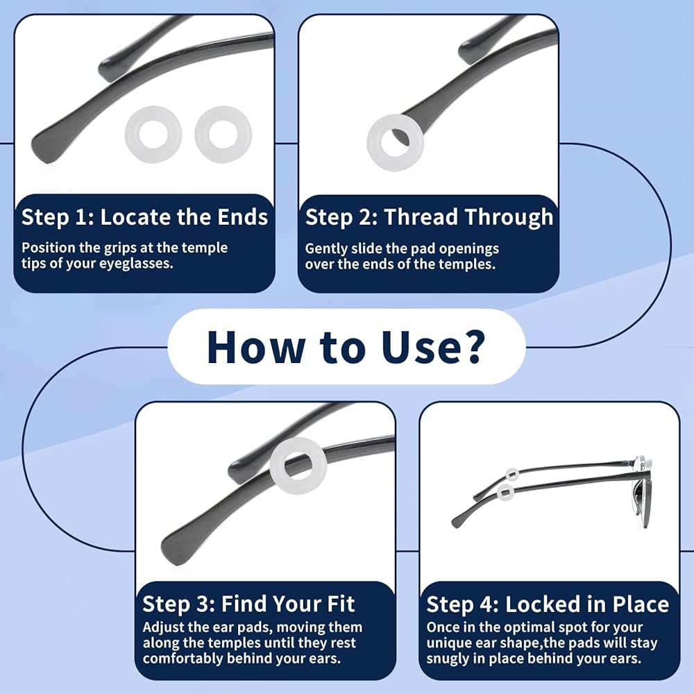 【Anti-Slip Fit】 These eyeglass ear cushions grip glasses firmly so they don't slide down your nose, making them perfect for active lifestyles. The soft silicone conforms to the ears for a custom fit that stays in place when you move your head. No more pushes glasses back up constantly!