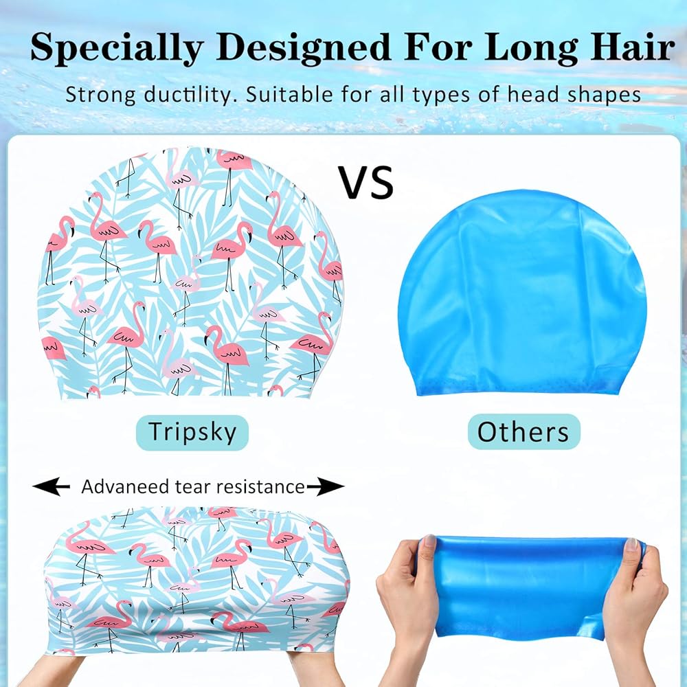 • Package contents: there are 2 styles of long hair silicone swimming caps printed with flamingo design, vivid and interesting patterns, fresh and bright colors; Enough quantity and beautiful style to meet your swimming wear or replacement needs