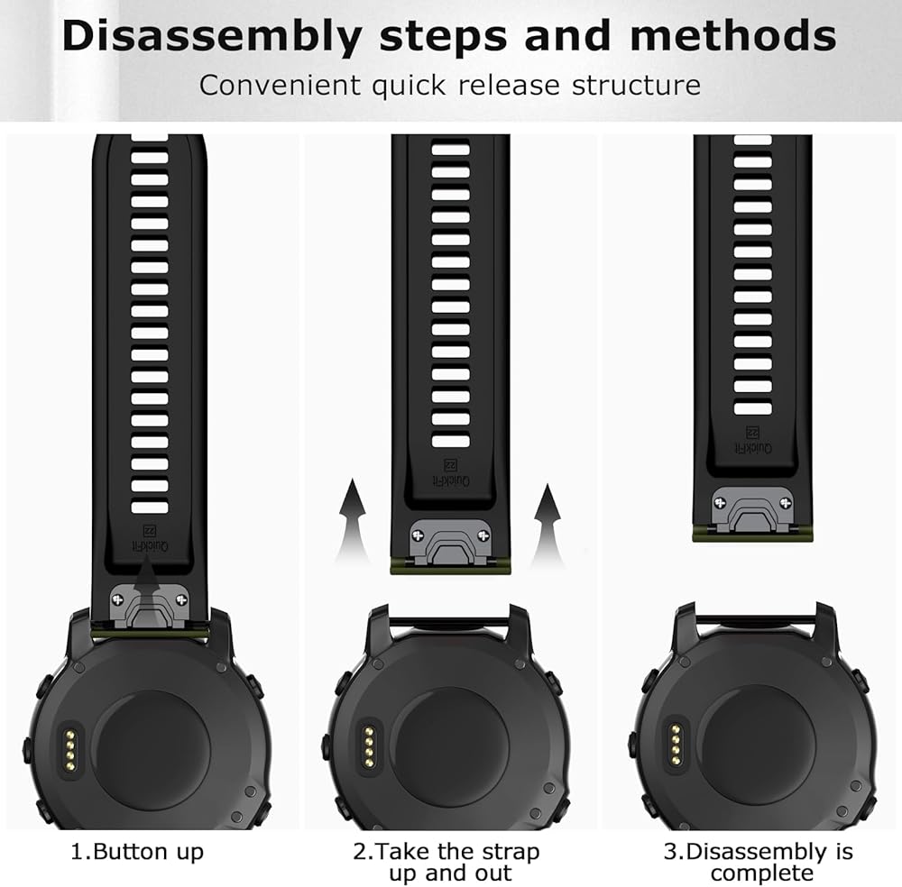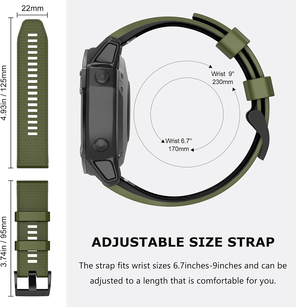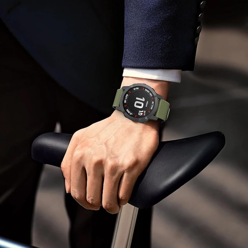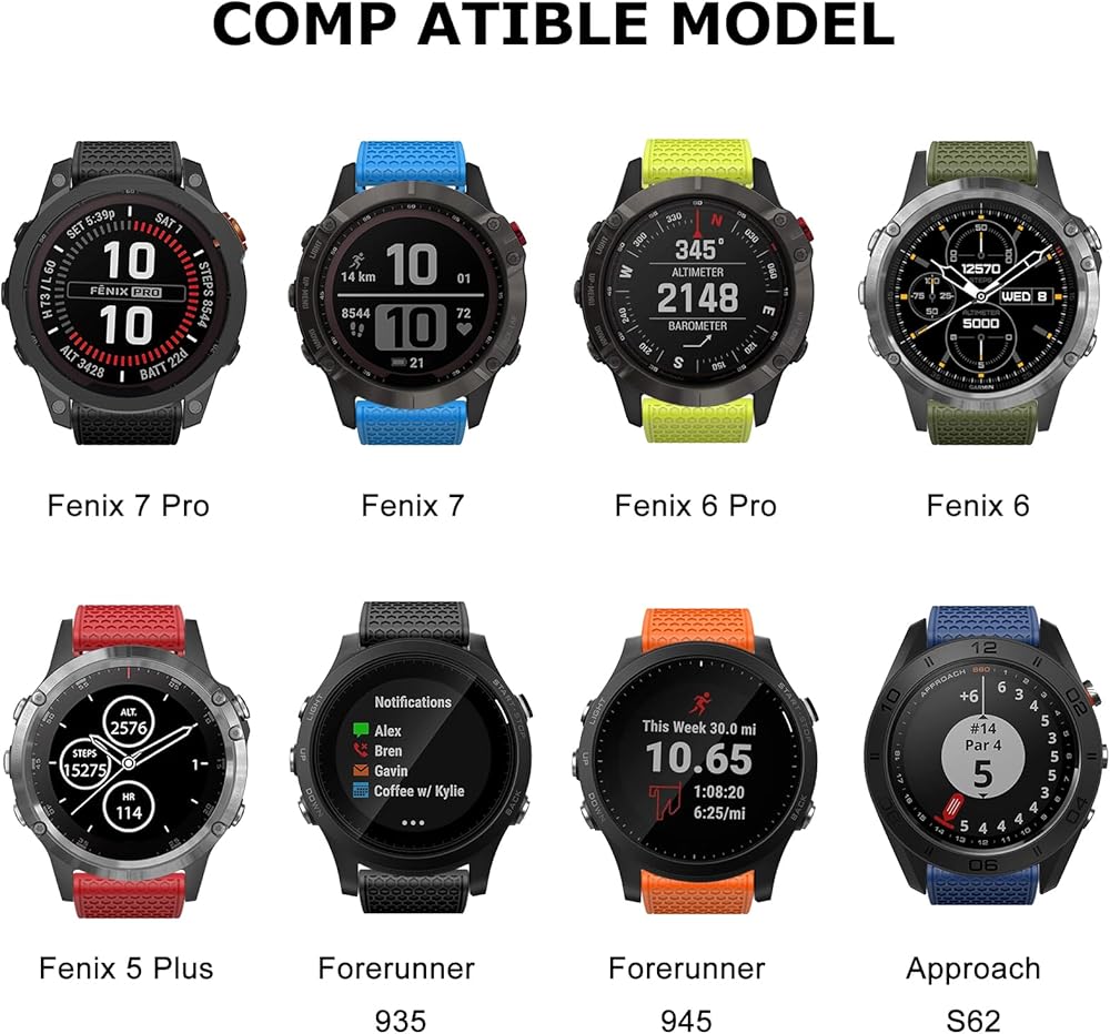 【نماذج متوافقة】سوار الساعة الرياضية هذا متوافق مع garmin Fenix 5 / Fenix 5 Plus / Garmin Fenix 6 / Fenix 6 Pro / Fenix 7/ Garmin Forerunner 935 / Forerunner 945 / Forerunner 955 / Garmin Approach S60 / Garmin Quatix 5 الذكية. إذا لم تكن متأكدًا من المقاس، فيرجى التحقق من طراز ساعتك والنماذج المتوافقة التي أدرجناها.