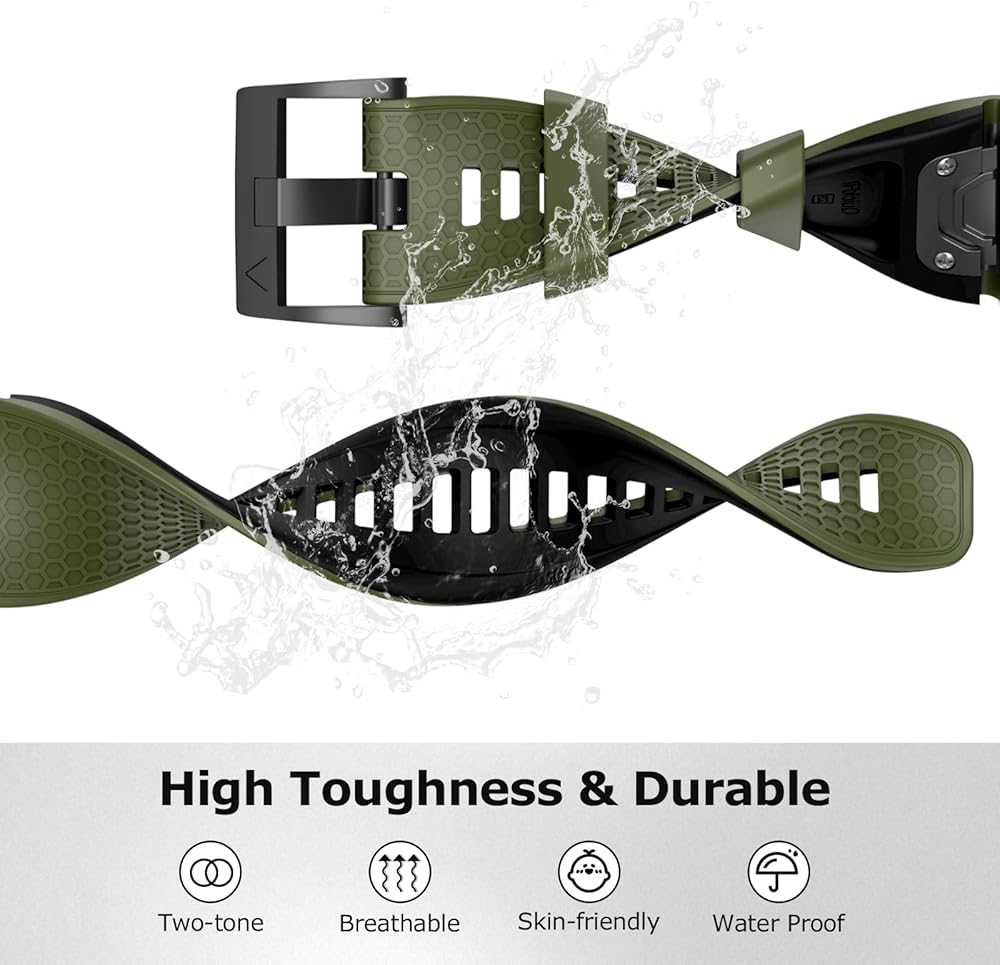【مادة صديقة للبيئة】حزام الساعة هذا مصنوع من السيليكون المتين المريح، بدون رائحة غريبة وغير ضارة، ناعم ولكن متين جدًا، يمكن لحزام السيليكون أيضًا أن يتحمل البرد أو الحرارة أثناء مشروع الغوص أو رحلة تسلق الصخور، سيكون شريكك الجيد في طريق سفرك.
