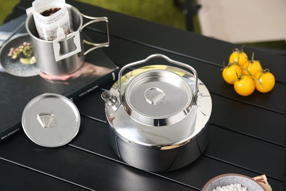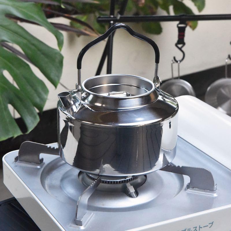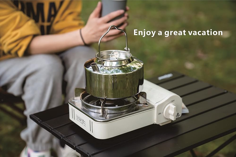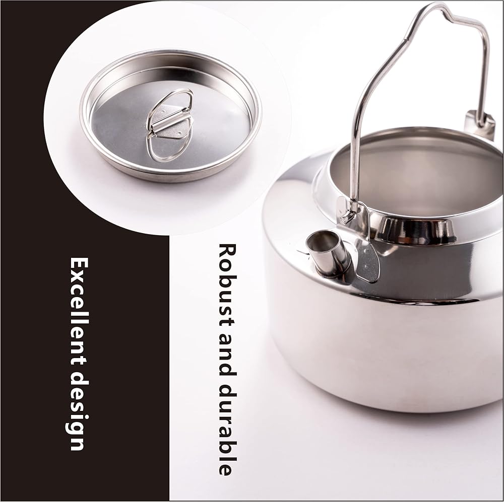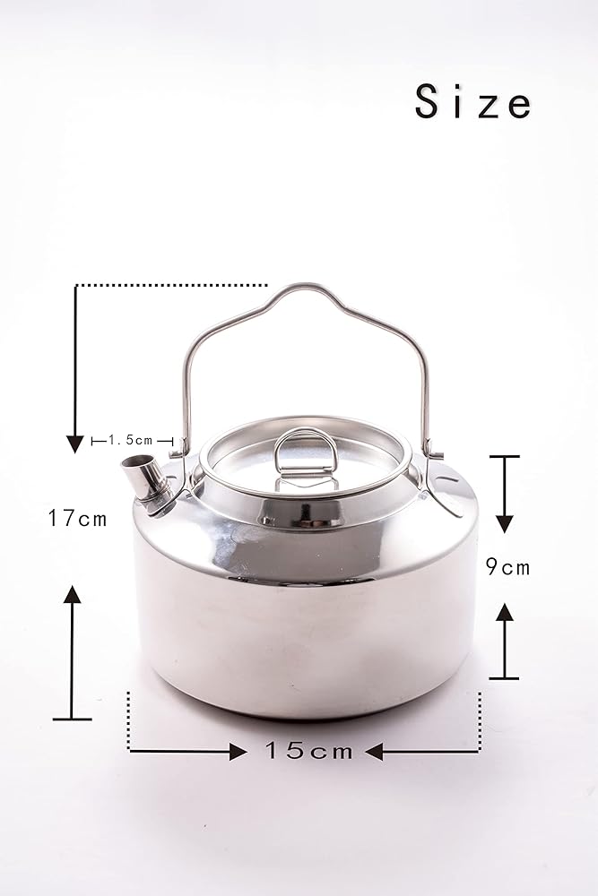 • للاستخدام: سهل التعليق على نار المخيم، غطاء آمن من أجل الغليان السريع. تعتبر غلاية الفولاذ المقاوم للصدأ آمنة للاستخدام على جميع النيران المفتوحة مثل نيران المخيمات والمدافئ ومواقد التخييم وما إلى ذلك.