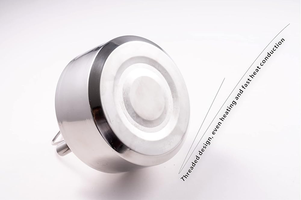 • الجودة: مصنوعة من الفولاذ المقاوم للصدأ، توفر المادة السميكة للغلاية أفضل احتفاظ بالحرارة والعملية والموثوقية. وتضمن سنوات من الأداء الدائم!