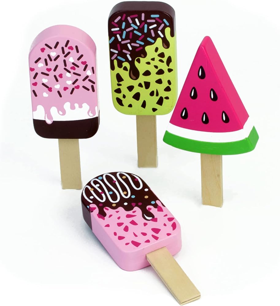 مجموعة الطعام الخشبية التظاهرية من صوفيا مع قوالب آيس كريم متنوعة تتضمن الفراولة ورقائق النعناع والشوكولاتة والبطيخ، متعددة الألوان