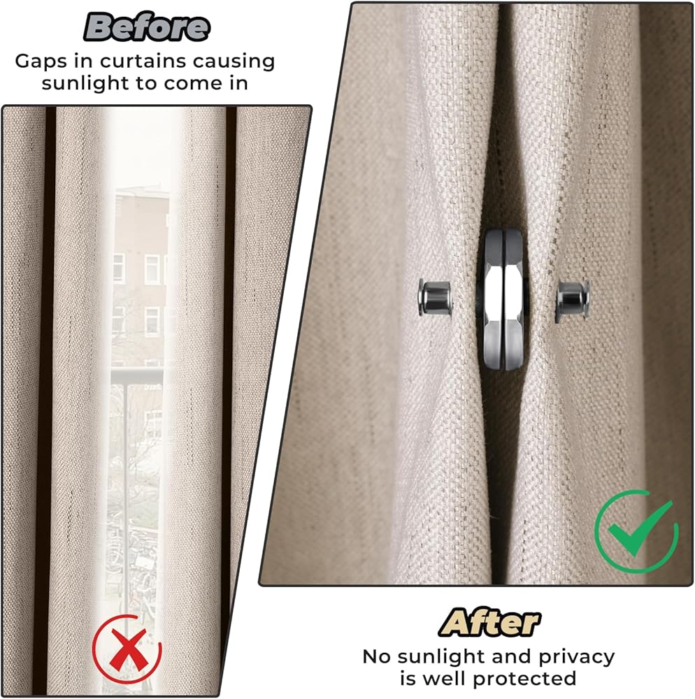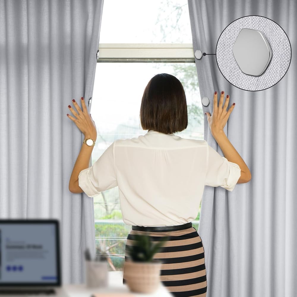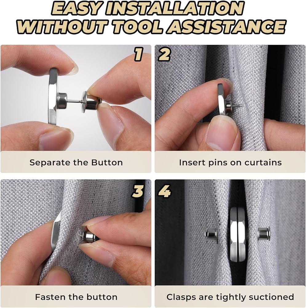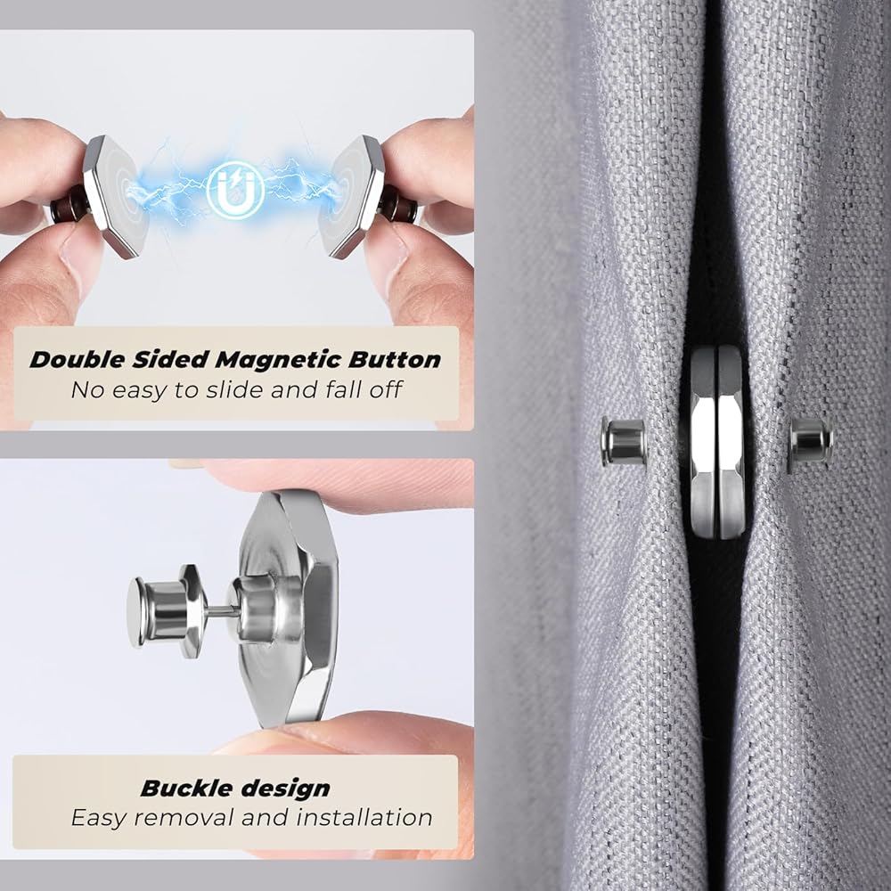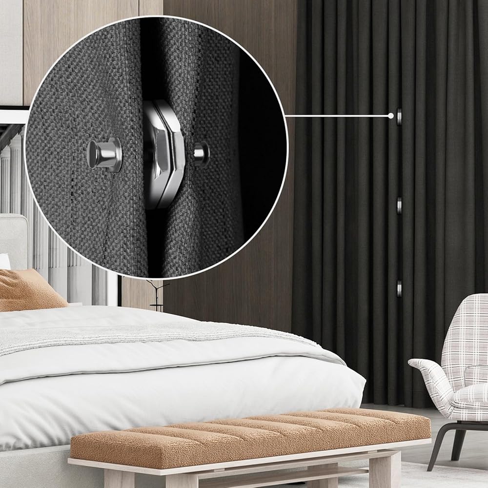 مغناطيس على الوجهين: إغلاق مغناطيس ستارة بقطر 0.98 بوصة لتقوية القوة المغناطيسية وسطح اتصال كبير وشفط قوي. تصميم الإبزيم الفريد من نوعه يجعله ثابتًا على ستائرك وليس من السهل أن يسقط.