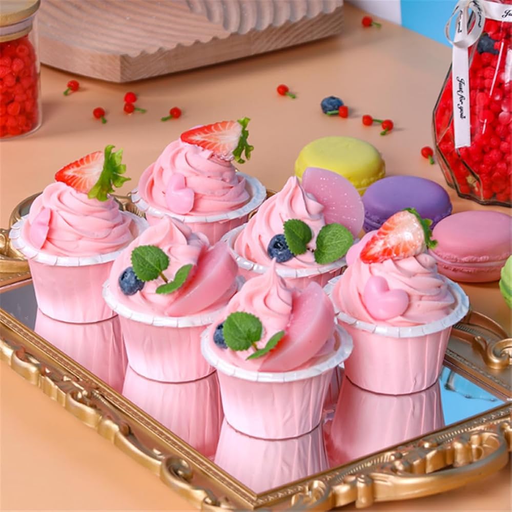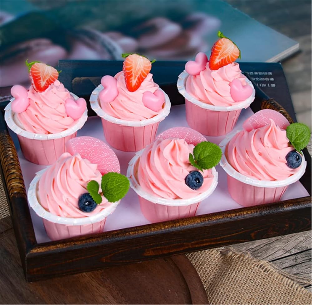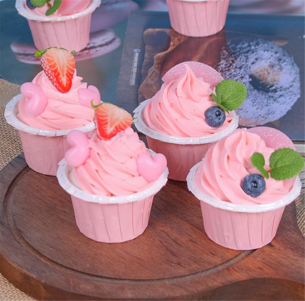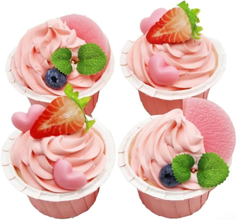 4 قطع نموذج كب كيك صناعي واقعي نموذج كعكة مزيف دعائم للتصوير الفوتوغرافي (وردي)