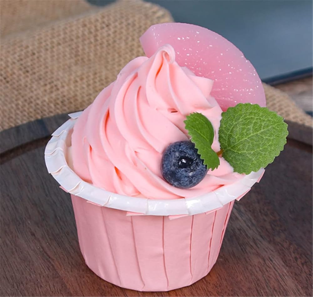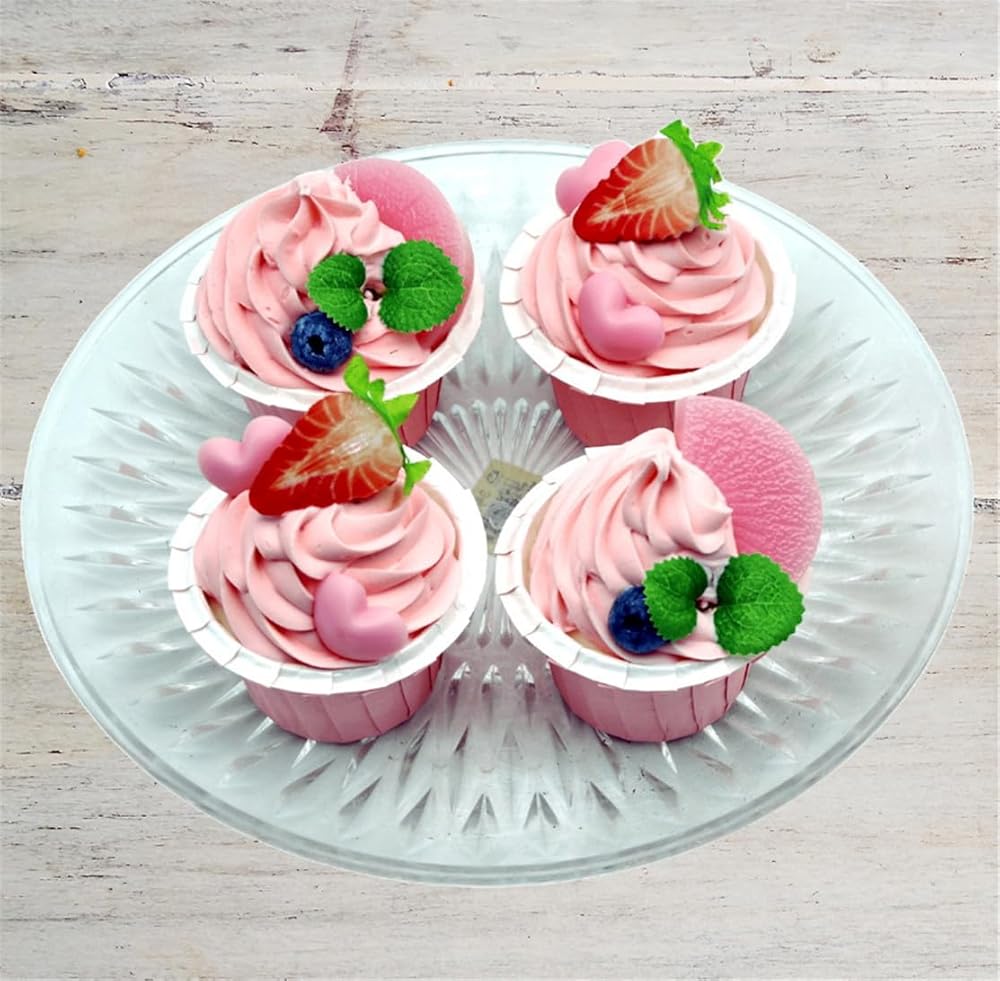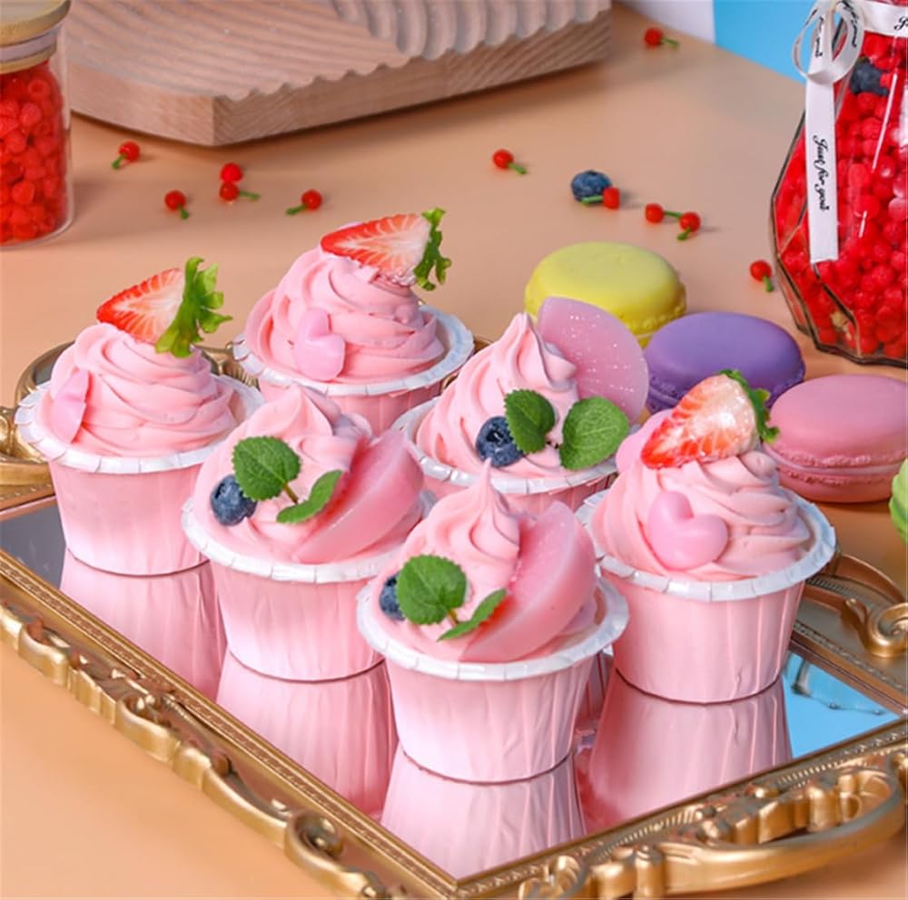 4 قطع نموذج كب كيك صناعي واقعي نموذج كعكة مزيف دعائم للتصوير الفوتوغرافي (وردي)