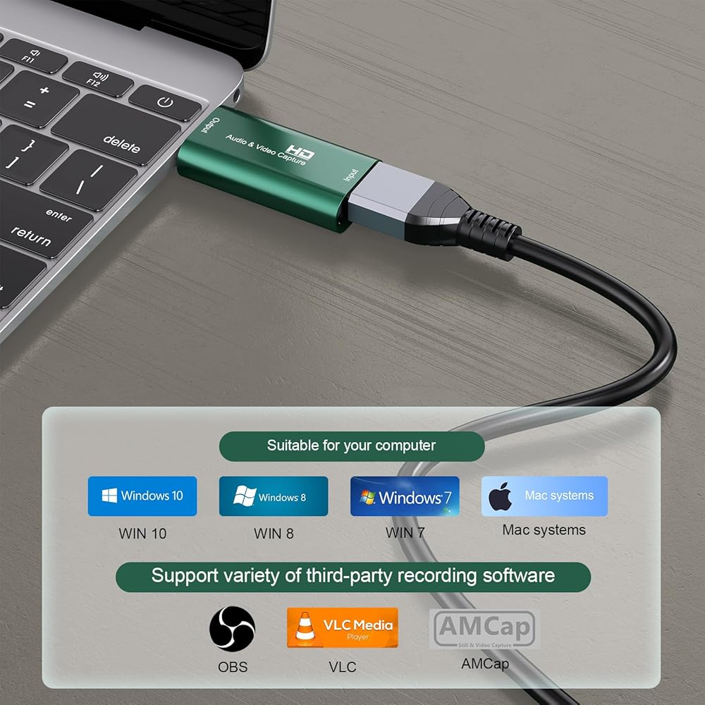 【توافق على نطاق واسع】يدعم جهاز التقاط الفيديو معظم برامج الاقتناء، مثل VLC وOBS وAmcap وما إلى ذلك؛ يدعم بث أو تسجيل صور عالية الوضوح لوحدات تحكم الألعاب أو الاجتماعات أو مقاطع الفيديو/التسجيلات الصوتية الأخرى على جهاز الكمبيوتر الخاص بك من خلال برنامج التقاط تابع لجهة خارجية؛ أو البث المباشر عن طريق الانترنت بسهولة. وفي الوقت نفسه، تتوافق بطاقة التقاط الفيديو hdmi مع أنظمة التشغيل Windows وAndroid وMacOS.