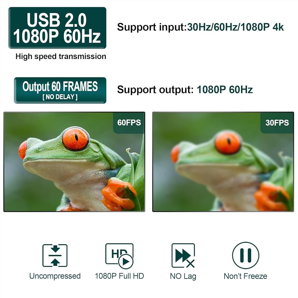 【بطاقة الالتقاط 】بطاقة الالتقاط تصل إلى 4K@60HZ مدخل عالي الوضوح، أقصى دقة للإخراج 1920×1080@60هرتز. تسجيل مقاطع الفيديو مباشرة على القرص الصلب دون تأخير زمني. التقاط الفيديو مناسب للأجهزة التي تحتوي على مخرج HDMI، مثل PS4 والتبديل وما إلى ذلك. يدعم جهاز التقاط الفيديو التسجيل عالي الجودة بدقة 1080 بكسل و60 إطارًا في الثانية والتبخير المباشر أيضًا. ملاحظة: يرجى الاتصال بكابل HDMI 4k الذي يمكن تحقيقه بإدخال 3840x2160@60 هرتز. (HDMI غير مشفر)