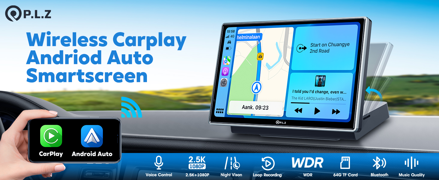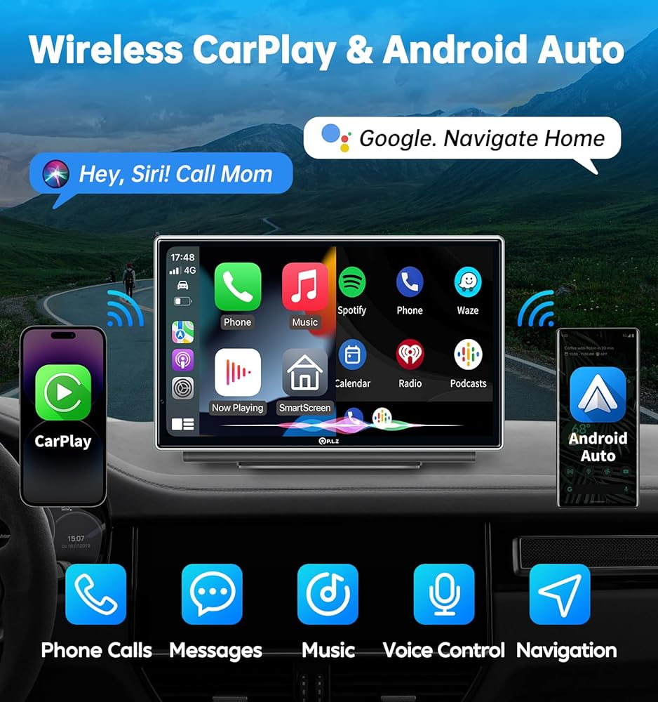 - |🚗 شاشة لمس ستيريو لاسلكية محمولة للسيارة - WIRELESS Apple Car Play وAndroid Auto. استمتع بحرية الاتصال بدون أسلاك، مما يسمح بالتحكم في الميزات الأساسية والوصول إليها بسلاسة أثناء التنقل. استفد من التحكم الصوتي المتقدم من خلال Apple Siri وGoogle Assistant، وإدارة المكالمات والملاحة والمزيد دون عناء للحصول على تجربة قيادة محسنة ومريحة حقًا.