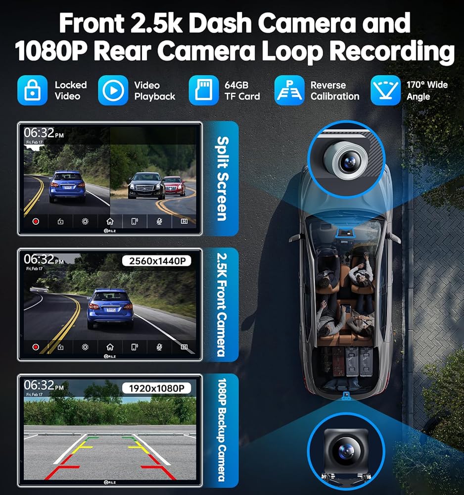 - |🚗📷 نظام الكاميرا المزدوجة المتقدم-- تشتمل وحدة العرض العلوية هذه على كاميرا أمامية مدمجة بدقة 2.5K وكاميرا احتياطية بدقة 1080P، وعرض أمامي 140 درجة وخلفية 170 درجة في نفس الوقت من شاشة مقسمة، مما يوفر الدعم الأمثل للرجوع للخلف وشاشات عرض مواقف السيارات. تدعم كلتا الكاميرتين التسجيل الحلقي بسلاسة، مما يضمن التسجيل المستمر دون انقطاع. كما تتضمن بطاقة Micro SD بسعة 64 جيجابايت.