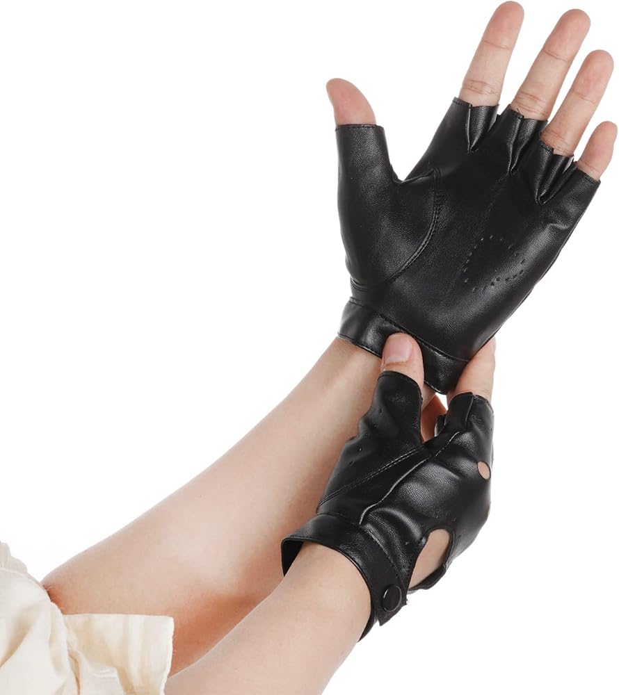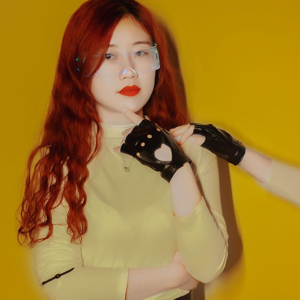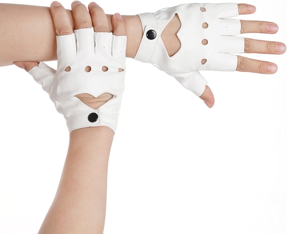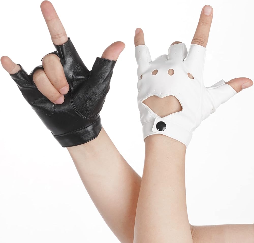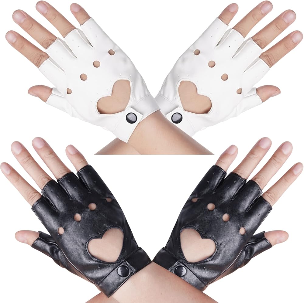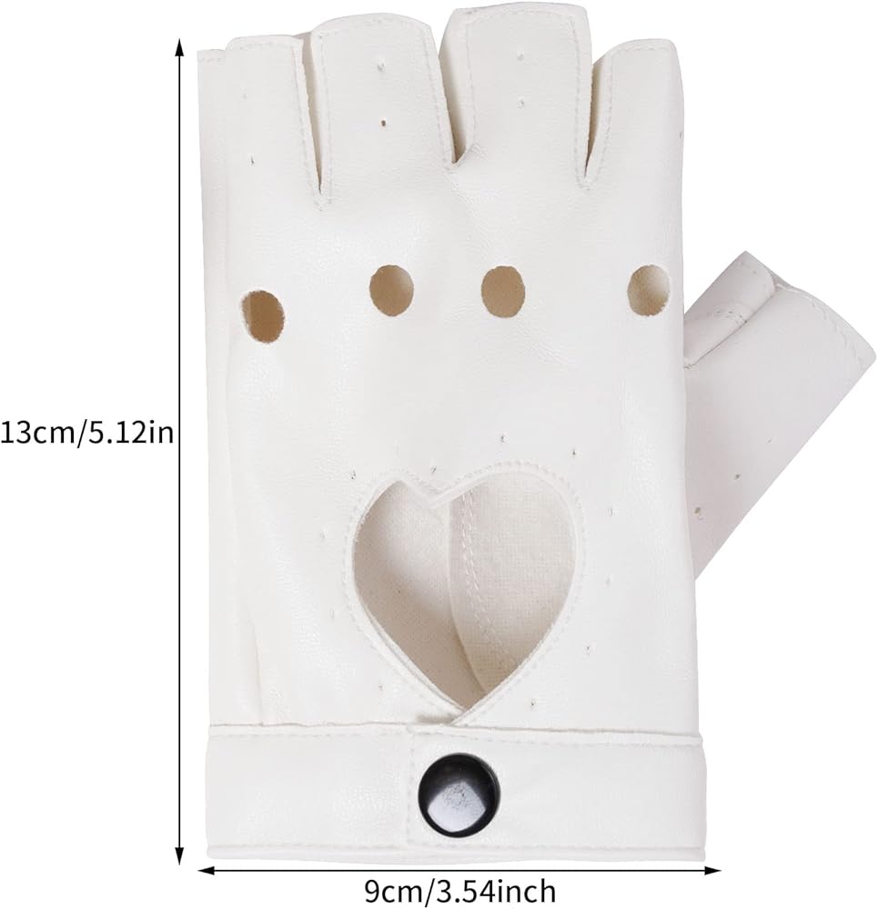 Women Heart Cutout Punk Half Finger PU Leather Gloves perfect for halloween costumes, dancing, Hip Hop, performance, pole dancing, cosplay, party concert, anime, ect