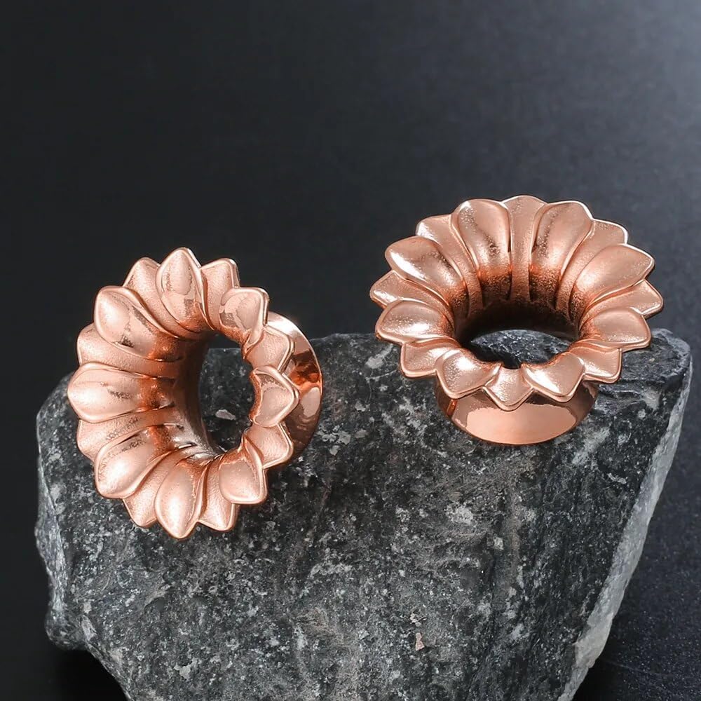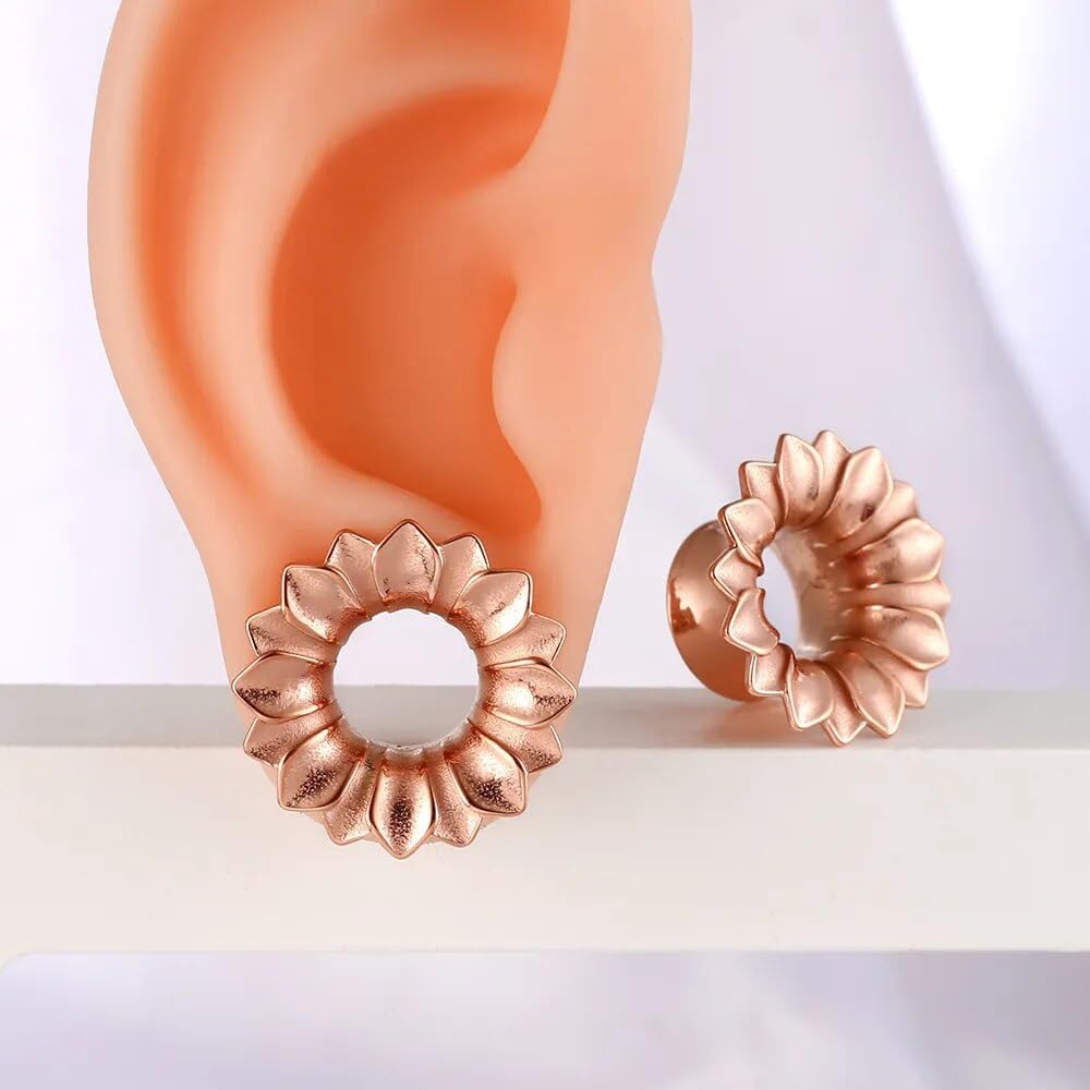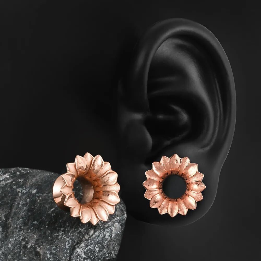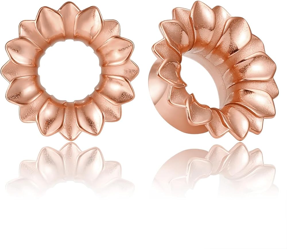 • Packed included: one pair of Rose Gold Sunflower ear plugs gauges earrings. Meticulously design gauges for ears, individual and tasteful, make yourself to be special guy.