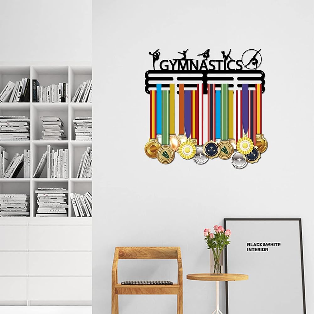 هدايا لمحبي الجمباز: حامل رائع لعرض ميداليات الشريط كهدية لمحبي الجمباز، للأطفال والكبار أيضًا. يمكن استخدامه كحامل للمجوهرات والمفاتيح والمقاود والقبعات والنظارات الشمسية وما إلى ذلك.