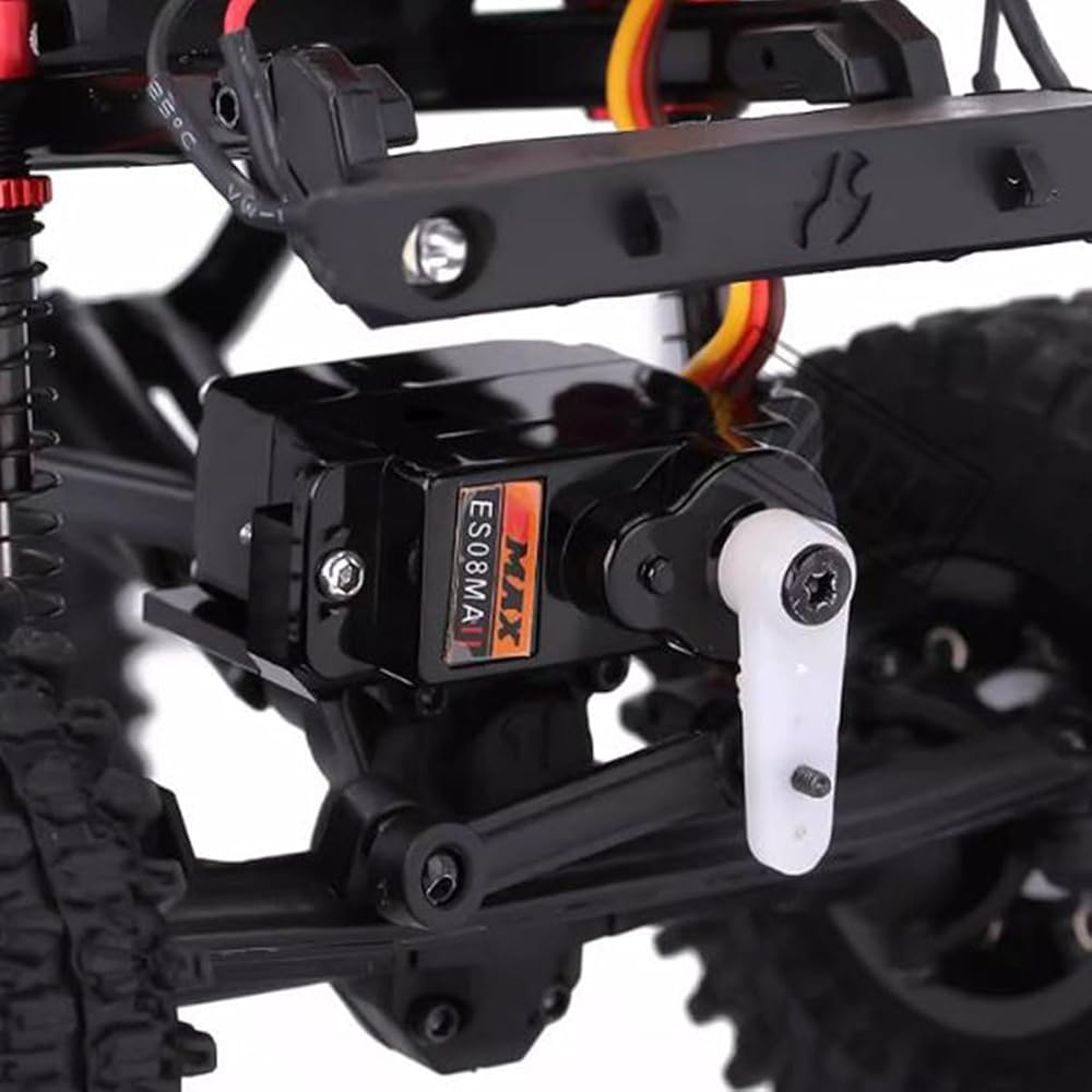 This scx24 servo is equipped with metal mount and servo horn, replaces the original plastic accessories.