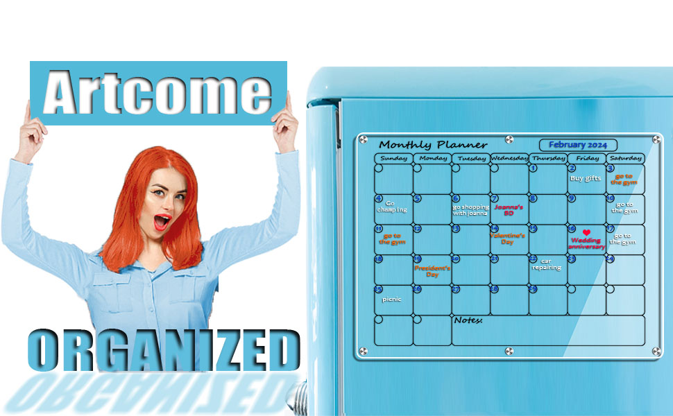 Artcome أكريليك تقويم الثلاجة المغناطيسي ومجموعة اللوحة الأسبوعية - 16 بوصة × 12 بوصة تقويم الثلاجة المغناطيسي لوحات المسح الجاف للثلاجة (أسود)