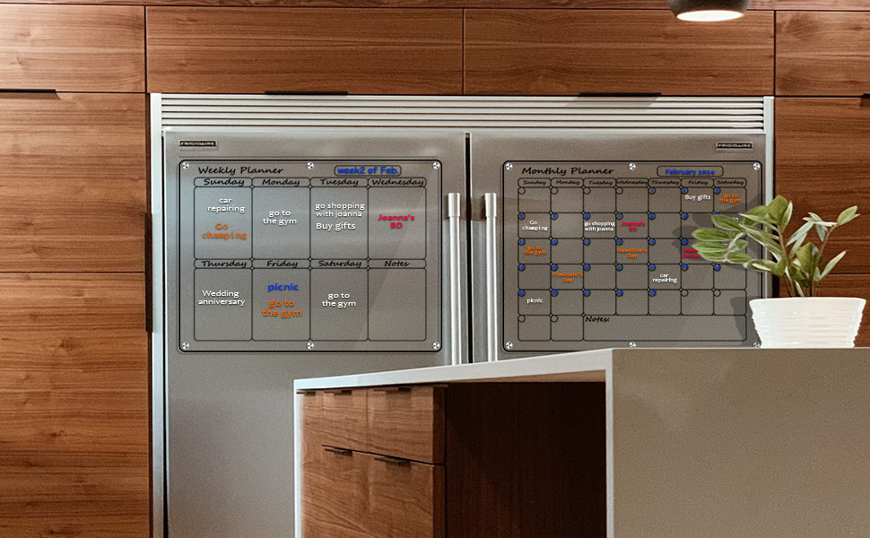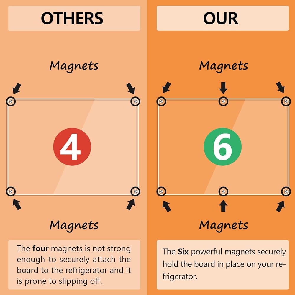 • تصميم مغناطيسي قوي: مزود بستة مغناطيسات قوية تتميز بحشيات لحماية سطح ثلاجتك، ويبقى هذا التقويم واللوحة الأسبوعية في مكانهما بشكل آمن، مما يوفر منصة موثوقة لخططك وإبداعك. (الوظيفة المغناطيسية ليست مناسبة للأسطح المصنوعة من الفولاذ المقاوم للصدأ.)