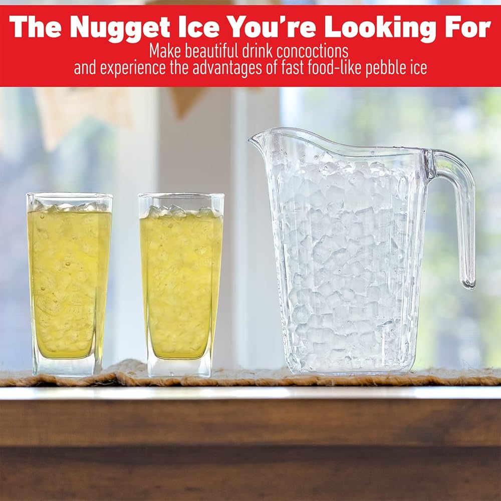 LOOK MOM, NO SCOOP! - Featuring a stylish stainless steel body, operation is as simple as placing your drink cup under the dispenser, pulling the lever and that's it, no ice scoop needed here! You have crunchy and chewable nugget ice! With a fast ice-making process, your ice bin is filled with up to 1.8 pounds of ice in just one hour and stores as much as 3.3 pounds. Enjoy cold drinks on demand for your whole family or when hosting at home.