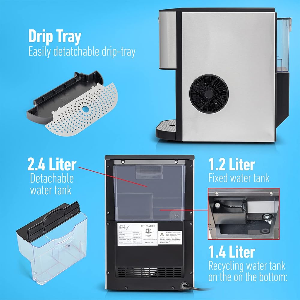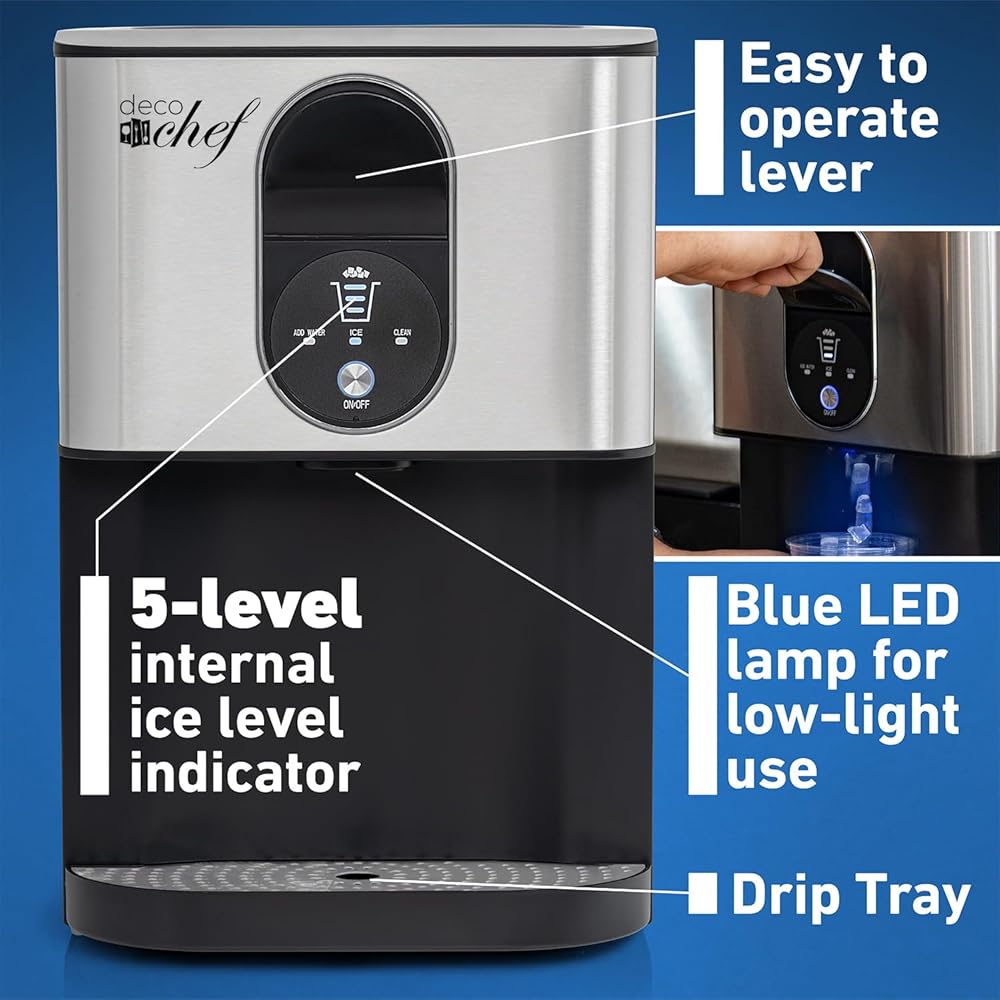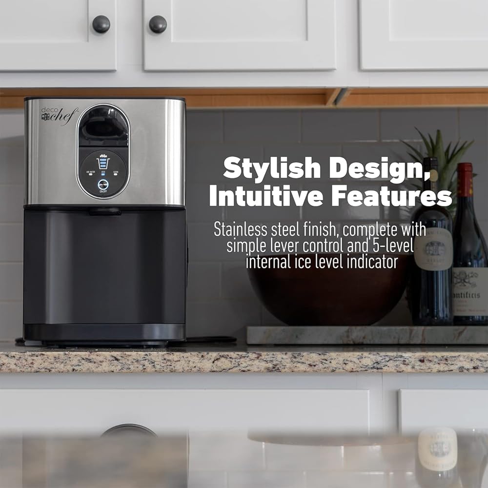 46 POUNDS OF ICE PER DAY - Convenient, efficient, and simple to use, the Deco Chef 46LB Self-Dispensing Countertop Nugget Ice Maker provides plenty of fresh nugget ice hourly and up to 46 pounds of ice daily. Enjoy refrigerator dispenser performance and a space-saving countertop-sized footprint, perfect for small kitchens, apartments, dorms, and offices.