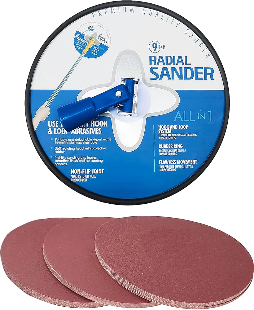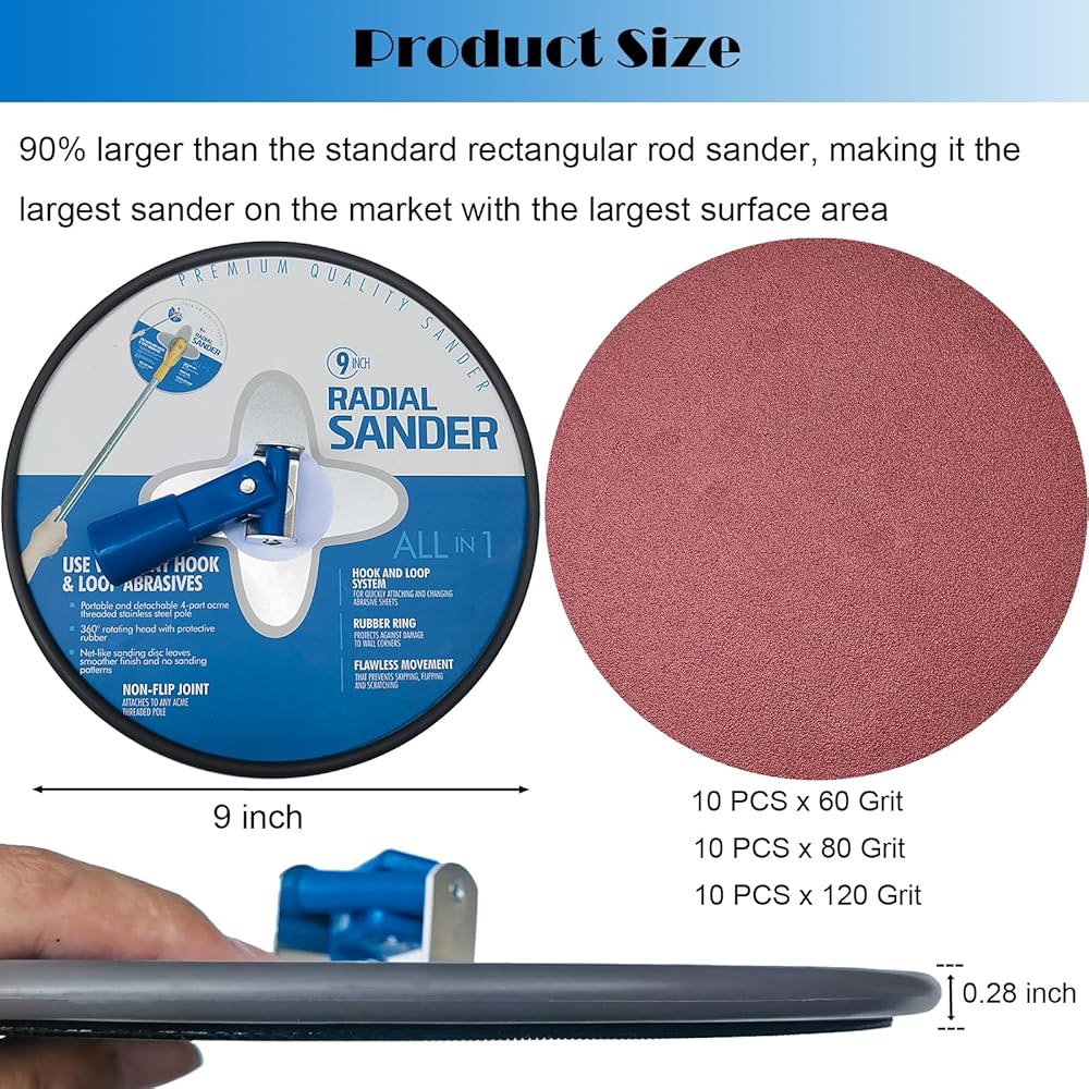 • Compatibility: The drywall sander is compatible with all 9-inch hook loop sandpaper. These radial sanding disks fit most 9-inch radial sanders, making them ideal for polishing and achieving a smooth, scratch-free finish on drywall compound.
