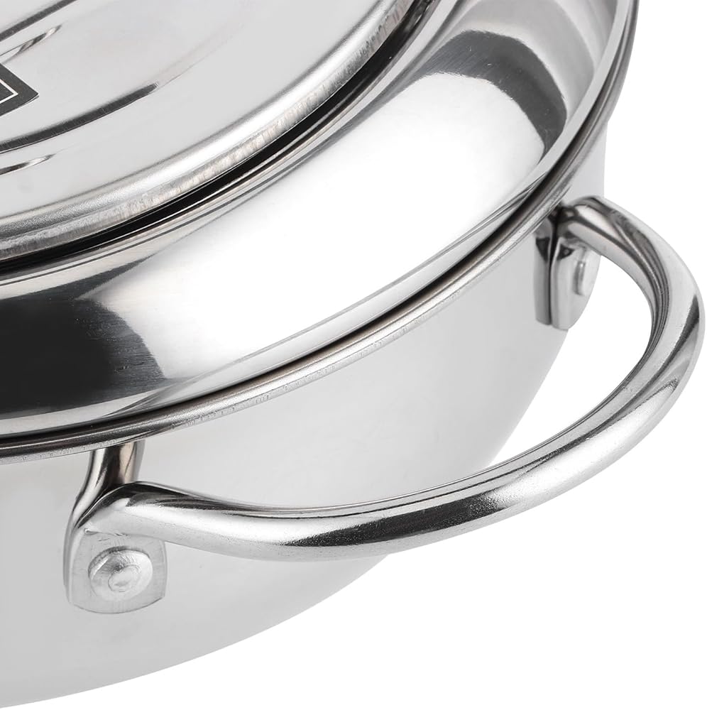 الصحة والسلامة --- المقلاة مصنوعة من الفولاذ المقاوم للصدأ الآمن غذائيًا، وهو متين ومقاوم لدرجات الحرارة العالية ويمكنه الاتصال مباشرة بالطعام. مع مقبض بارد الملمس، يمكن لوعاء القلي المصنوع من الفولاذ المقاوم للصدأ أن يمنع الحروق، كما أن وعاء القلي المصنوع من الفولاذ المقاوم للصدأ سهل التنظيف والتخزين، ومناسب للقلي.