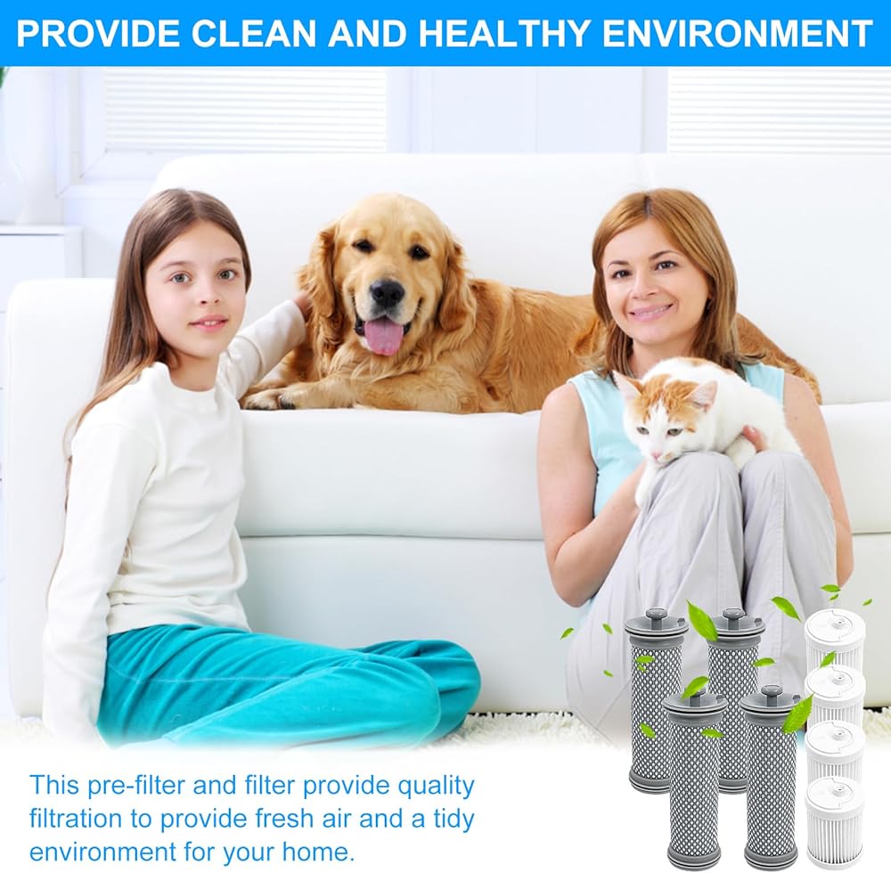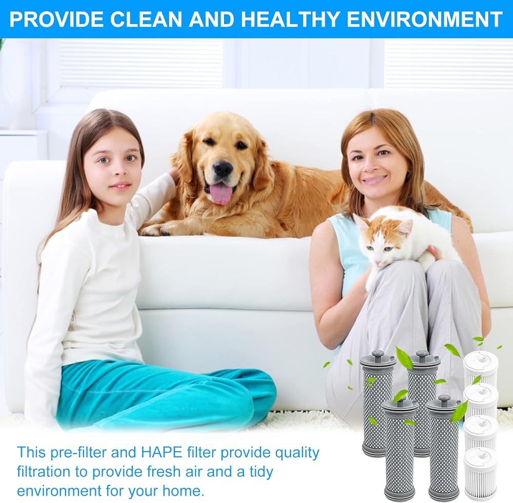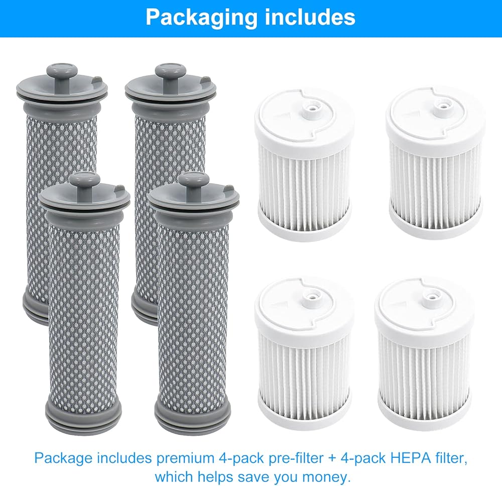 • 【مجموعة فلتر بديلة】تتضمن الأجزاء البديلة 4 مرشحات مسبقة من الألياف الدقيقة و4 مرشحات HEPA وفرشاة تنظيف واحدة.