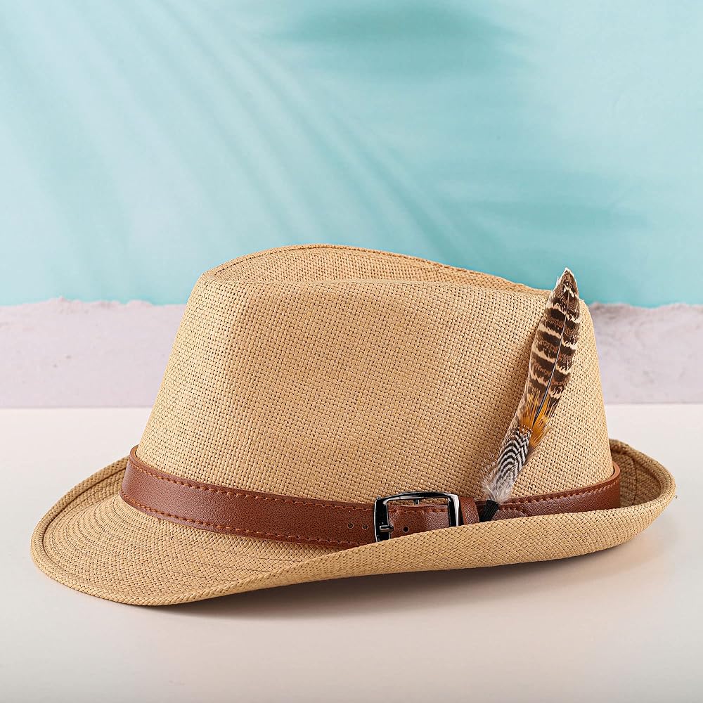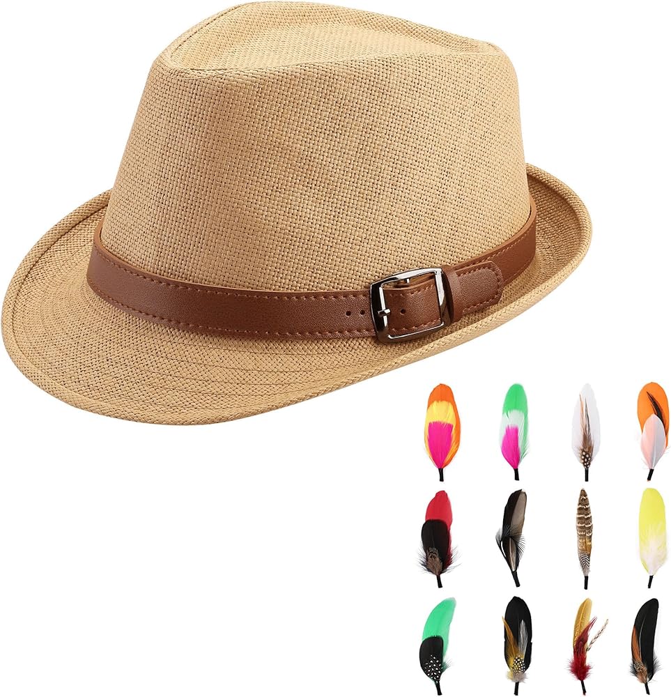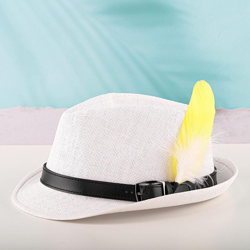 الحزمة - عنصرين: 1*قبعة فيدورا من القش و12*قبعة من الريش.