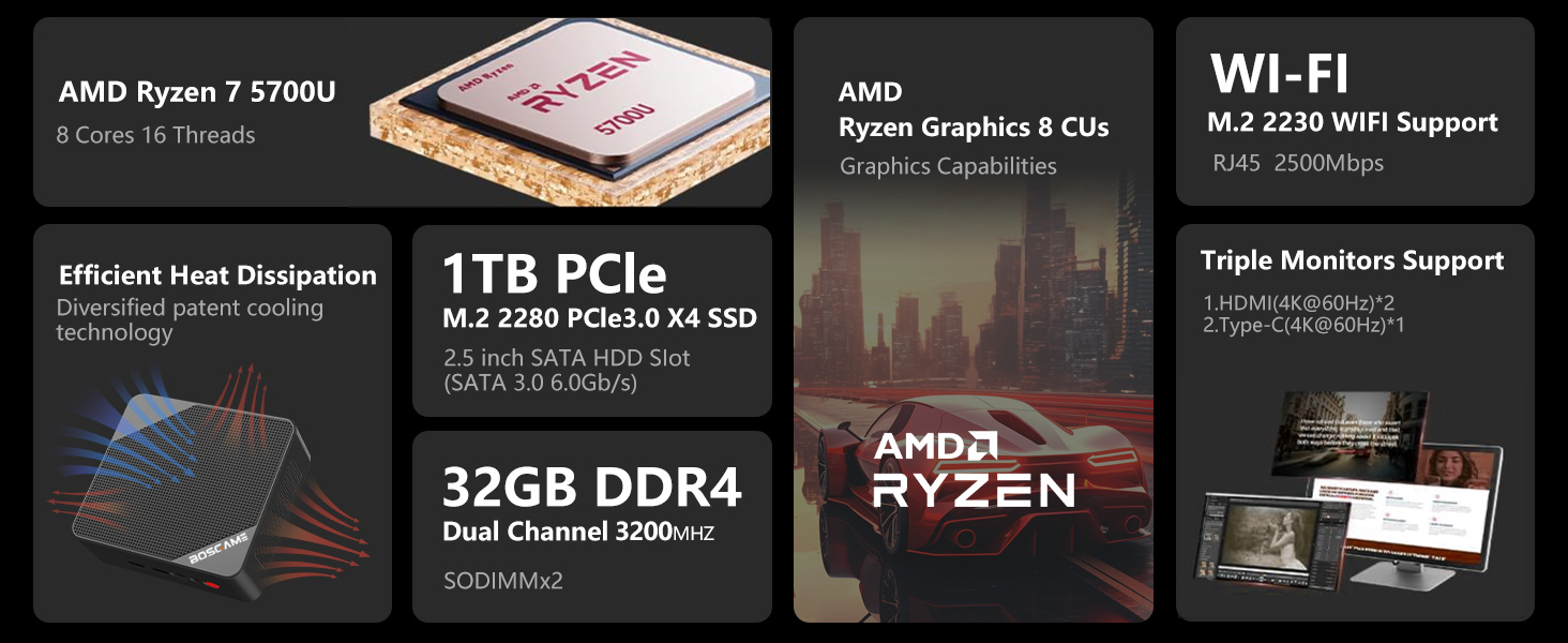 🎈[معالج AMD RYZEN 7 5700U] تم تجهيز جهاز الكمبيوتر الصغير BOSGAME بمعالج AMD Ryzen 7 5700U (8C/16T، ذاكرة تخزين مؤقت 16 ميجا، حتى 4.3 جيجا هرتز)، أقصى تردد لرسومات وحدة معالجة الرسومات 1900 ميجا هرتز. مقارنة مع AMD Ryzen 5 (5600U/5500U)، U57 MINI PC 5700U أداء وحدة المعالجة المركزية +30%، وحدة معالجة الرسومات +35%، أداء أكثر قوة وتشغيل أكثر سلاسة.