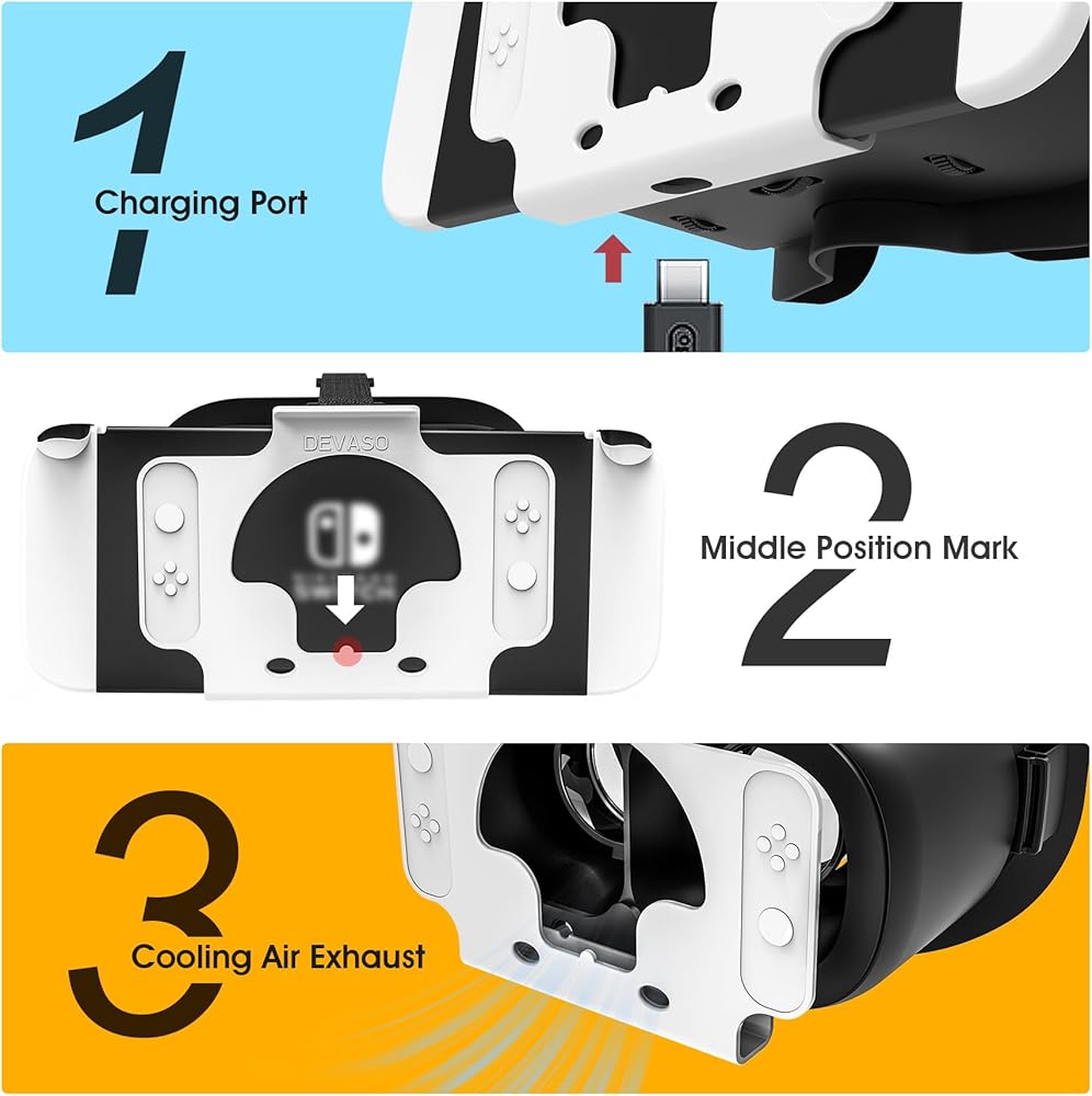 【نظارات الواقع الافتراضي المطورة بالكامل】تحتوي سماعة الرأس Switch VR على عدسات مطورة قابلة للتعديل تزيد من نافذة الرؤية بنسبة 20 بالمائة وتوفر وضوحًا أكبر. يمكنك بسهولة ضبط العدسات اليسرى واليمنى والأمامية والخلفية للمفتاح لضمان محاذاة مثالية للصورة وتجربة بصرية غامرة. للحصول على تجربة ألعاب غامرة حقًا تحرر يديك وتتيح لك الاستمتاع بالعالم الافتراضي على أكمل وجه.