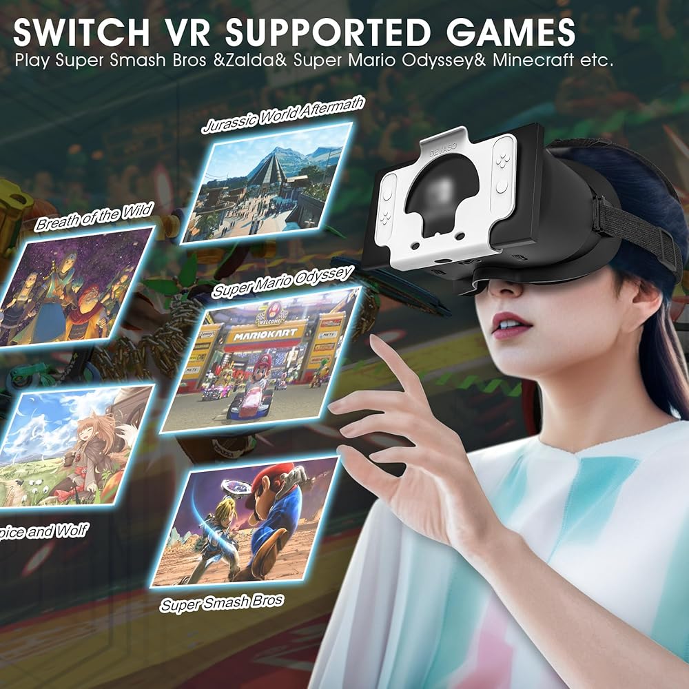 【تدعم بعض ألعاب الواقع الافتراضي 】تدعم سماعة الرأس Switch VR الخاصة بنا فقط Super Smash Bros وZelda وSuper Mario Odyssey وCaptain Toad وFive Nights at Freddy's وThe Legend of Zelda: Tears of the Kingdom وTreasure Tracker في وضع الواقع الافتراضي (يُرجى الترقية إلى أعلى إصدار) أو أي لعبة Switch VR أخرى، ويمكنك أيضًا مشاهدة مقاطع فيديو VR على YouTube من خلال جهاز Switch الخاص بك. الهدية المثالية للعائلة أو الأصدقاء الذين يحبون ألعاب Switch. ملاحظة: لا يتم تضمين التبديل/التبديل في الحزمة.