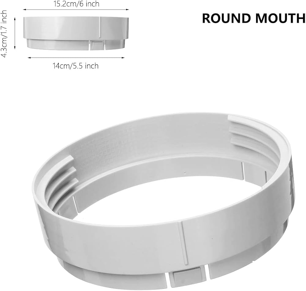 مناسب لخرطوم عادم مكيف الهواء بقطر 15 سم / 5.9 انش. يرجى التأكد من أن هذا الملحق مناسب لخرطوم عادم مكيف الهواء قبل الشراء. محول الخرطوم مصنوع من مادة بلاستيك PVC عالية الجودة، وله قوة وإحكام معينين، المحول الكلي مسطح وسلس، ليس من السهل كسره، آمن ومتين، لن يخدش سطح جسم التركيب، يمكنك استخدامه بثقة.