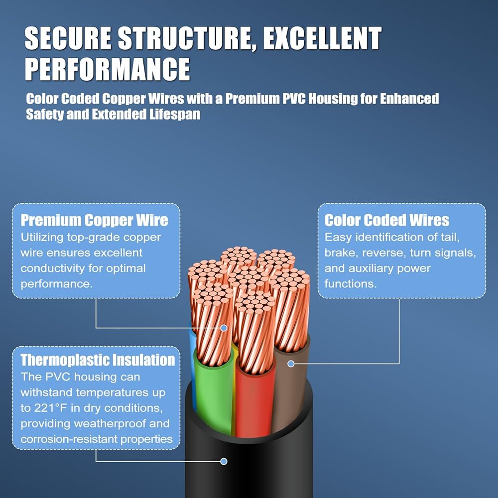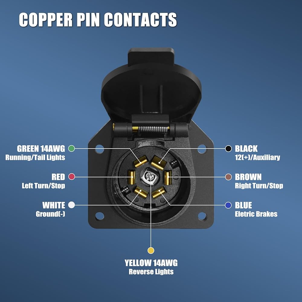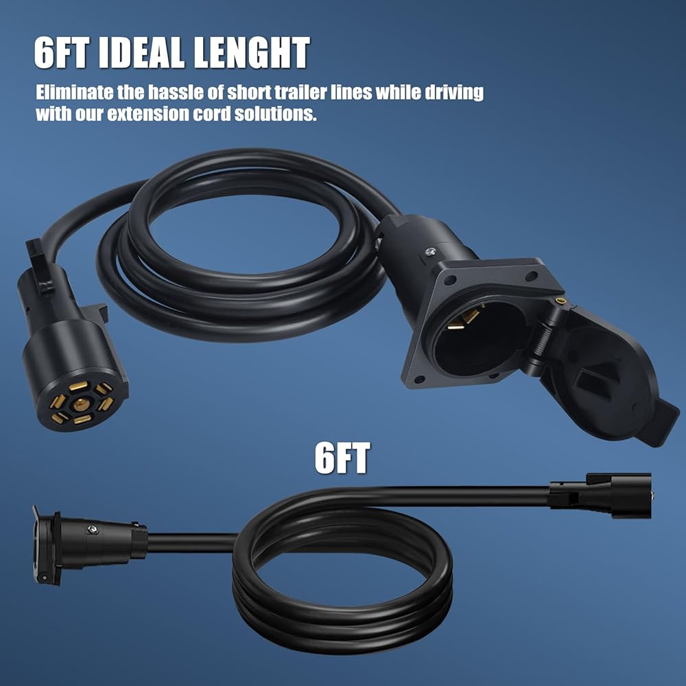 ما تحصل عليه - كابل تمديد قابس مقطورة بطول 6 أقدام و7 اتجاهات مع وصلات دبوس نحاسية وغطاء غبار لحماية المقبس من الأوساخ والرطوبة. بالإضافة إلى ذلك، ضمان لمدة 12 شهرًا وخدمة عملاء ودودة.