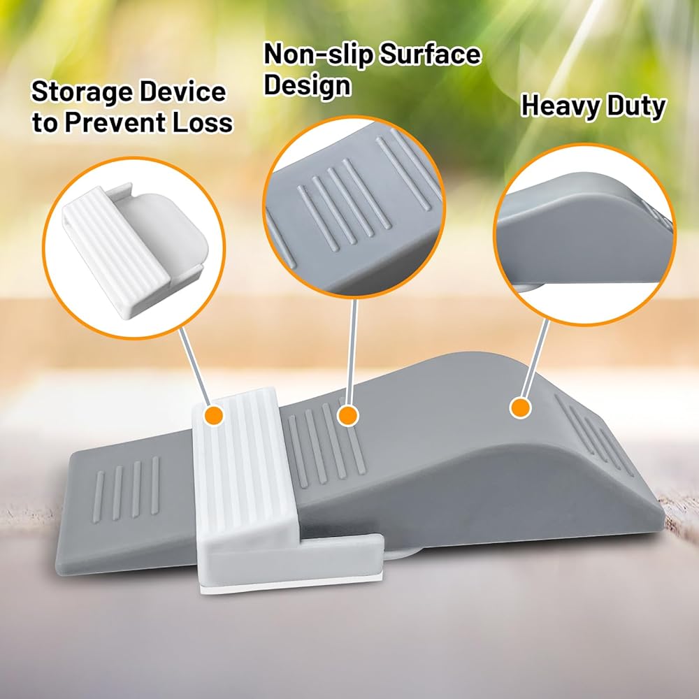 🚪[سهل الاستخدام والتخزين]: توضع إسفين الباب ببساطة في الجزء السفلي من بابك. لن تحتاج إلى البحث عن حاجز الباب - فهو يقف هناك داخل خطافه! ببساطة قم بتقشيرها ولصقها على أي باب، مما يحافظ على السدادة جاهزة للاستخدام في كل مرة تحتاج إليها.