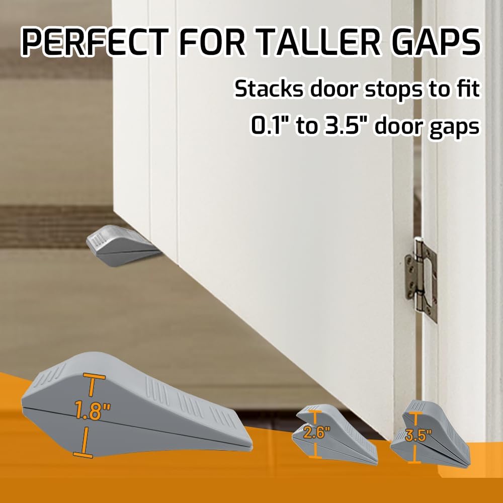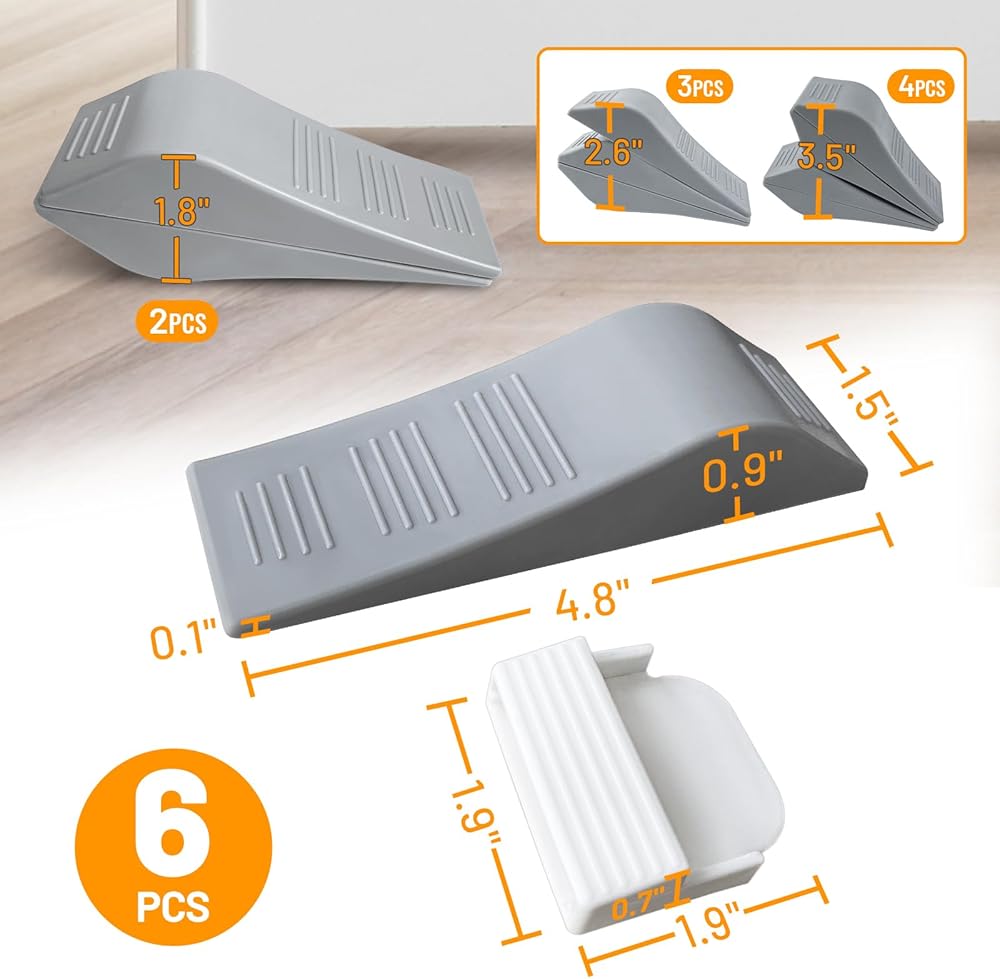 🚪[مناسبة لفجوات الأبواب أقل من 3.5 بوصة]: قياس سدادات كل باب طول 4.83 بوصة × عرض 1.9 بوصة × ارتفاع 0.94 بوصة، 6 قطع. إذا كانت فجوة الباب أعلى من 0.9 بوصة، يمكنك تكديس سدادتي الباب معًا، بحيث تكون قوة التثبيت أقوى. تعتمد هذه السدادات على تصميم مائل لمنع الأبواب من الإغلاق من تلقاء نفسها.