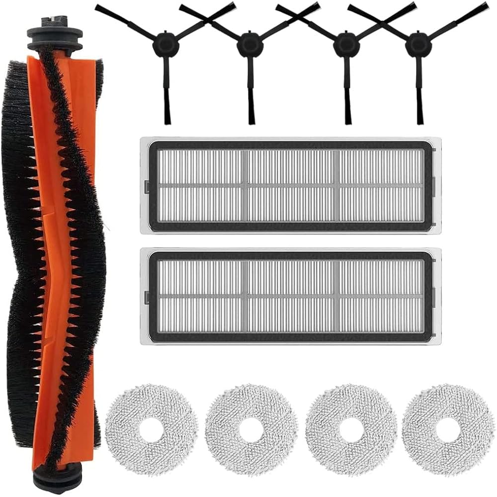 Package Includes 1 X main brush, 2 X hepa filters, 4 X side brushes, 4 X mop pads