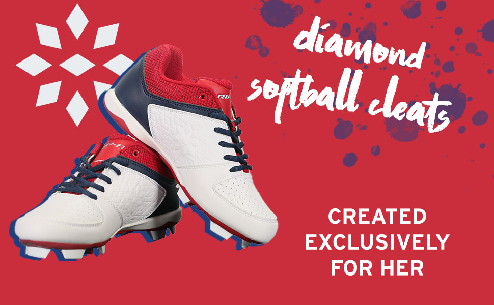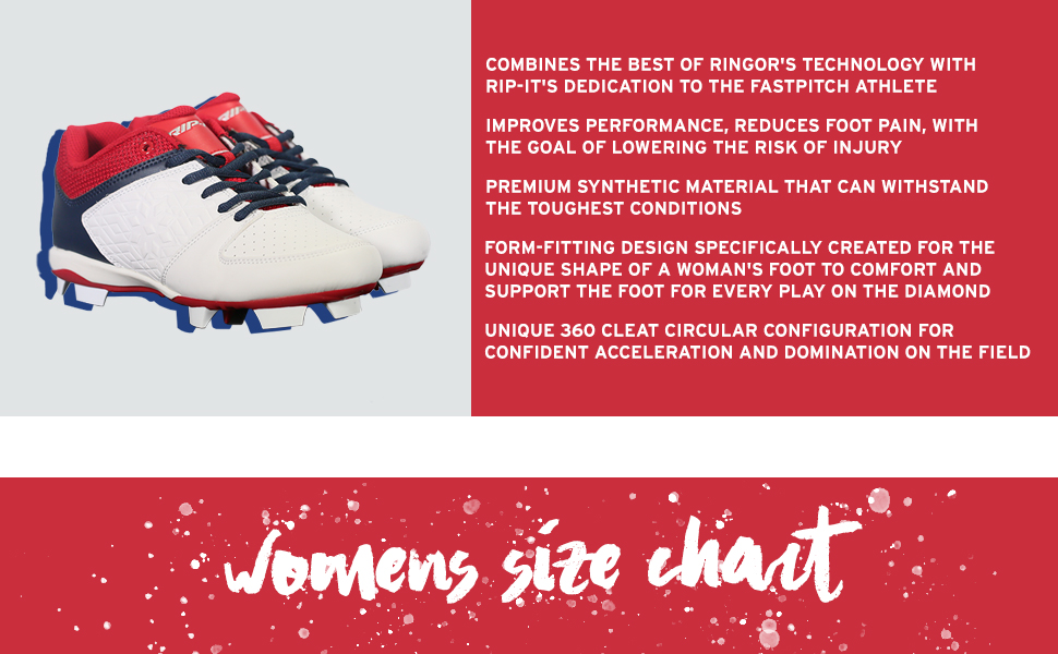 حذاء RIP-IT النسائي ذو الكرة اللينة الماسية - مقاس 6 - أحمر/أبيض/كحلي