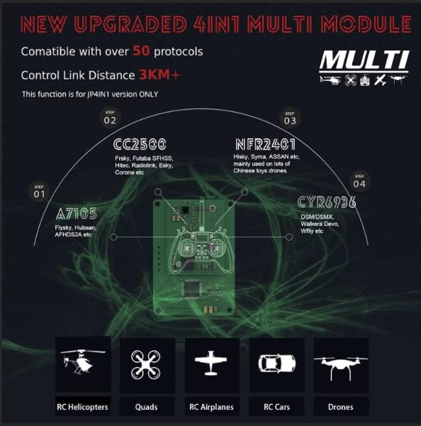 - دعم وحدة Jumper 915 (تباع بشكل منفصل) متوافقة مع أجهزة استقبال سلسلة Jumper R900، وأجهزة استقبال سلسلة Frsky R9، وTBS NANO Crossfire بأقصى سرعة