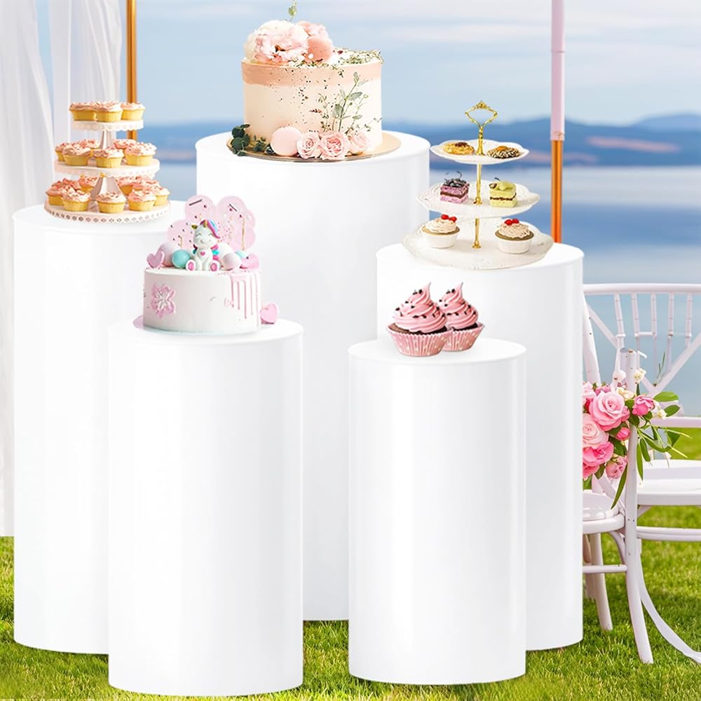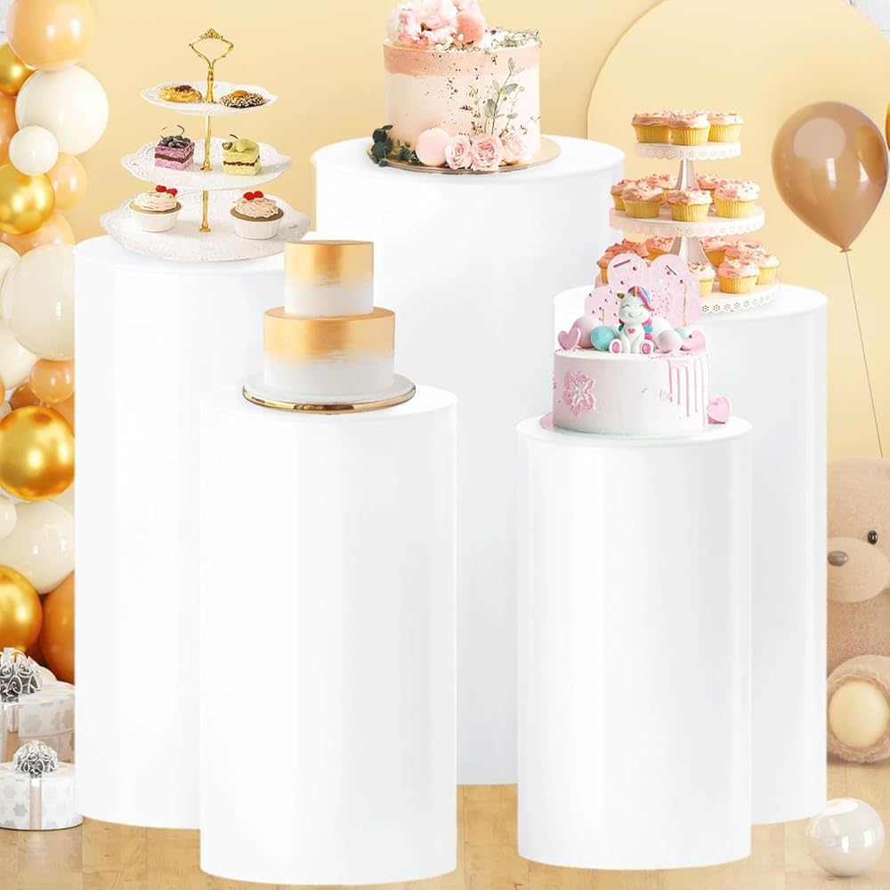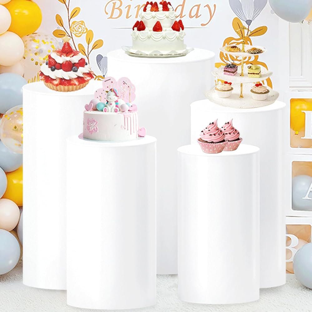 الأبيض اسطوانة الركيزة تقف 5 قطع جولة اسطوانة الركيزة الجداول للحزب اسطوانة تقف عرض طيدة أعمدة عيد ميلاد الحلوى كعكة الوقوف اسطوانة لحفل زفاف استقبال الأحداث الفنية