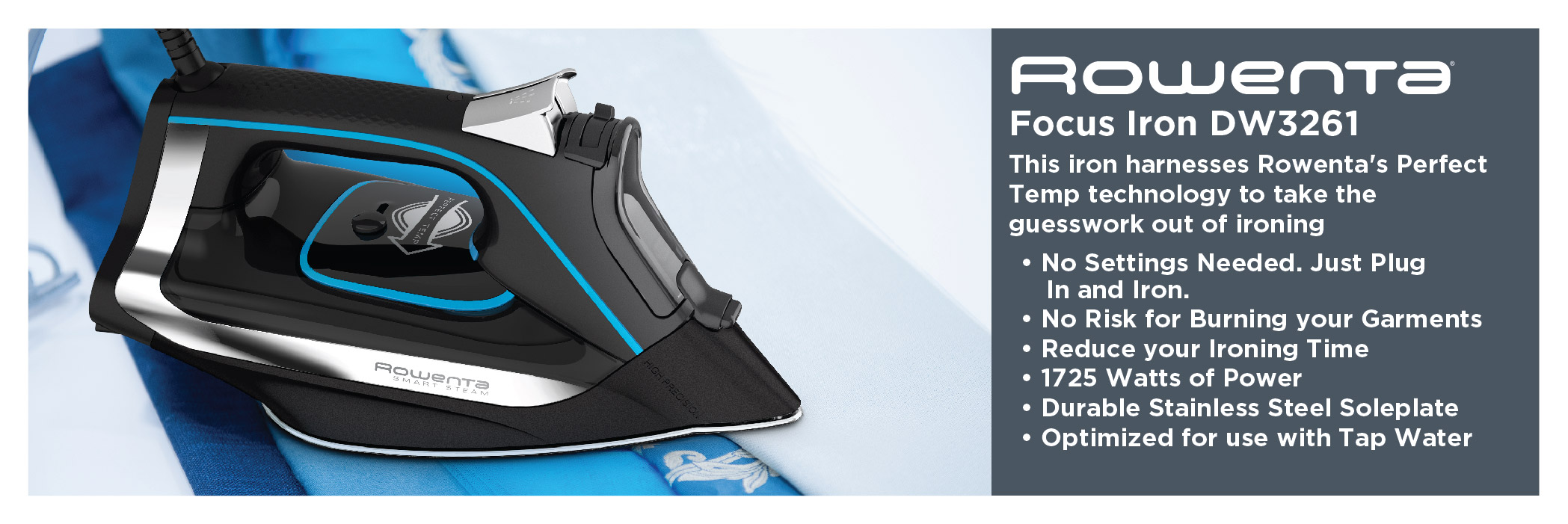 تستخدم مكواة Rowenta Smart Steam تقنية Perfect Temp لتقدم الحل الأمثل لجميع احتياجات الكي الخاصة بك يومًا بعد يوم. بفضل البناء الحصري متعدد الطبقات، فإنه يوفر درجة الحرارة المثالية لتوفير الوقت مع الحفاظ على الملابس محمية بالكامل - كل ذلك دون الحاجة إلى ضبط مقبض حراري أو فرز الملابس. اكتشف مكواة بخار عالية الأداء توفر أداءً قويًا وأقصى توزيع للبخار ومتانة مذهلة.