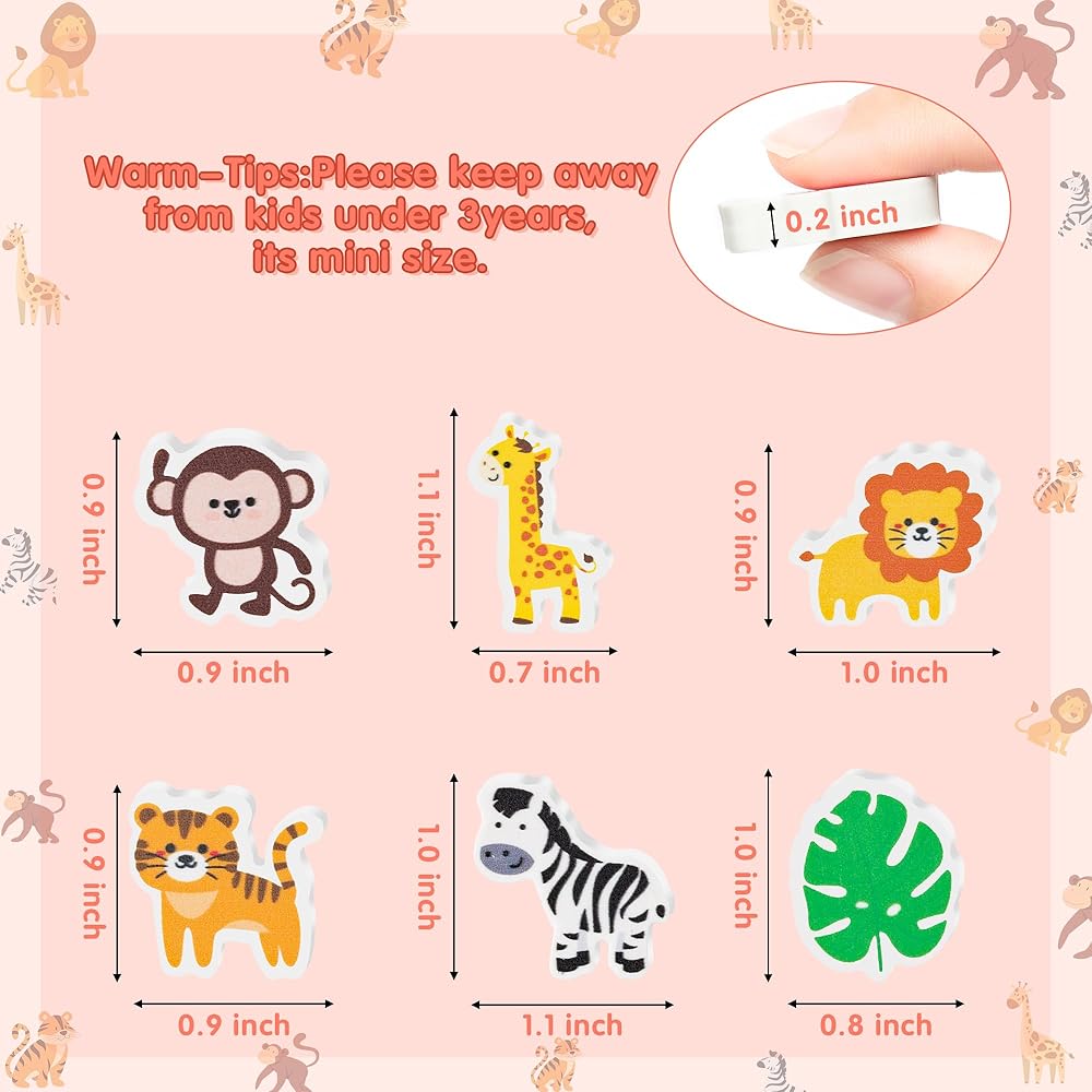 Package Contain: Package come with 60pcs safari animals erasers in 6 different designs, each design has 10pcs. Each eraser measures about 1.0 inch, very suitable for using and carrying, you can also share with your friends.